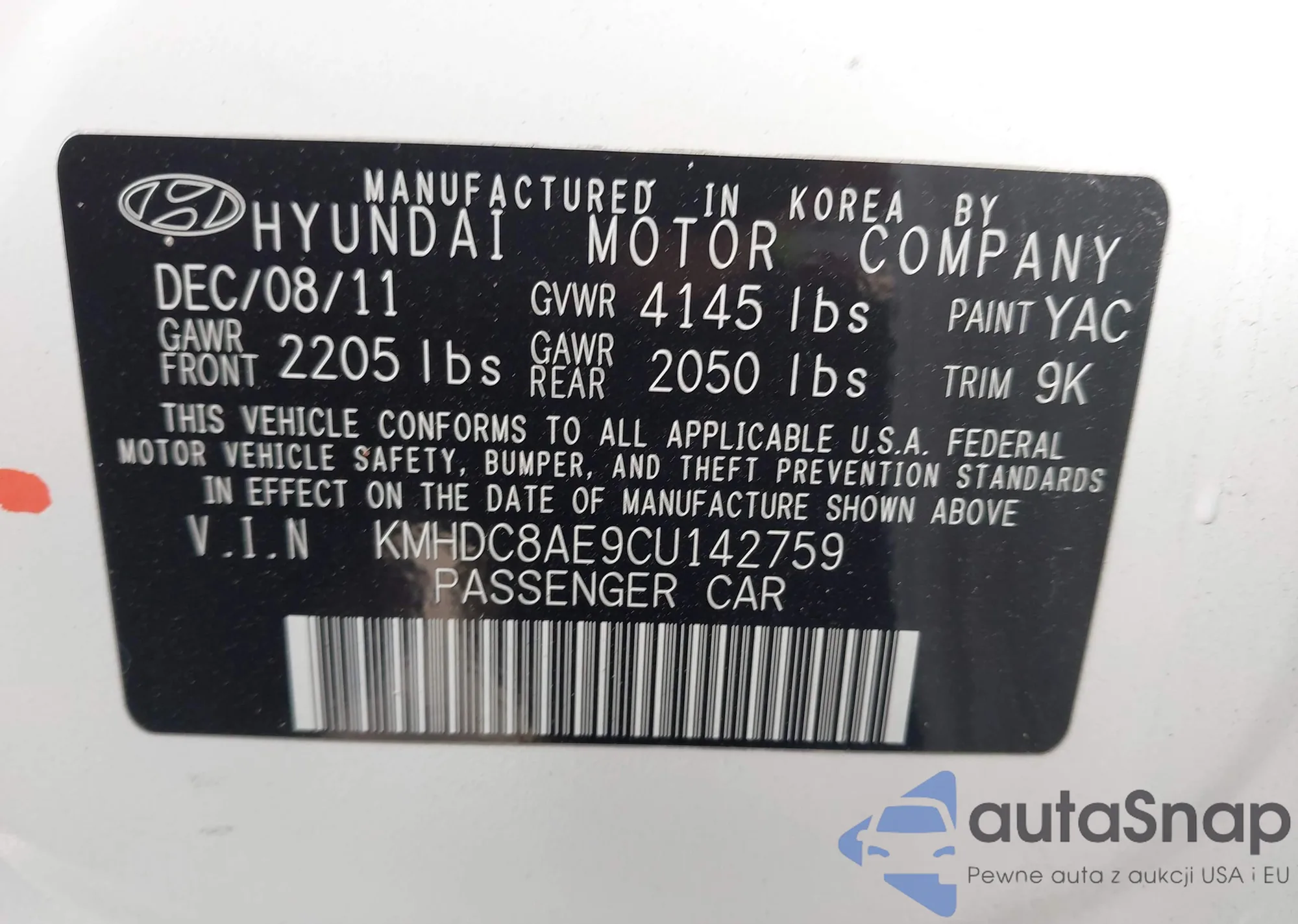 The car Hyundai Elantra 2012 (VIN KMHDC8AE9CU142759) has not been auctioned before. The documents are clean, and the mileage matches or is below the market average. Sold by an insurance company – we recommend purchase. Delivery to the port will take approx. 6–8 weeks.
