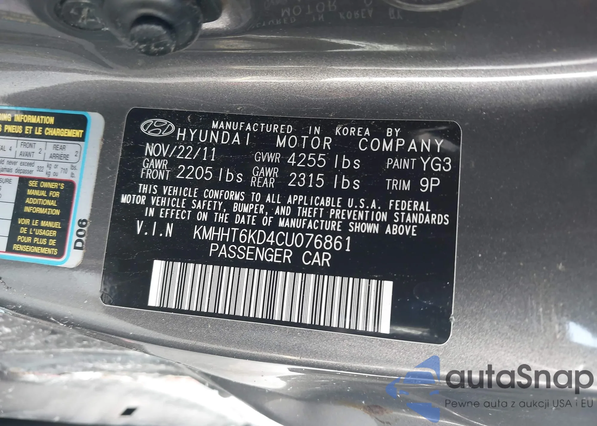 The car Hyundai Genesis 2012 (VIN KMHHT6KD4CU076861) has not been auctioned before. The documents are clean, and the mileage matches or is below the market average. Sold by an insurance company – we recommend purchase. Delivery to the port will take approx. 6–8 weeks.