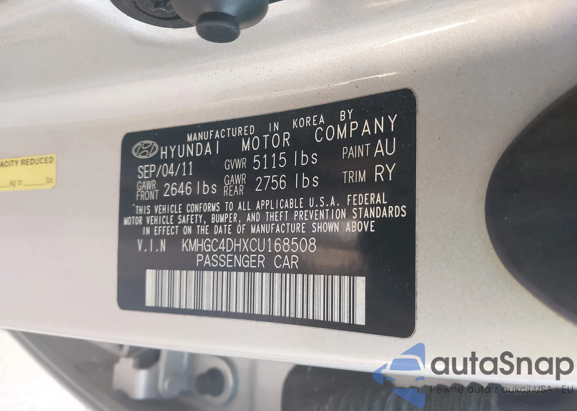 VIN: KMHGC4DHXCU168508
