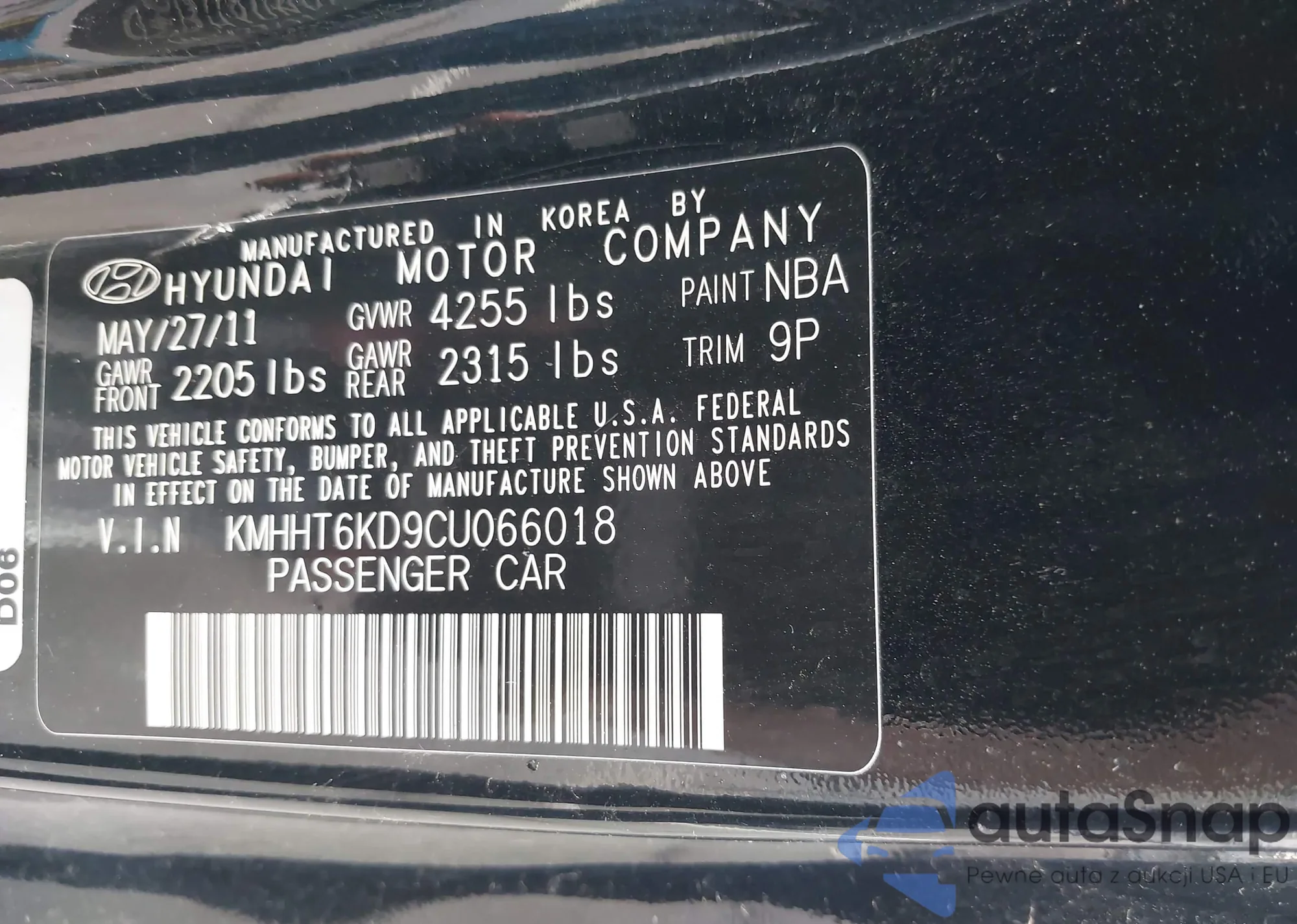 VIN: KMHHT6KD9CU066018