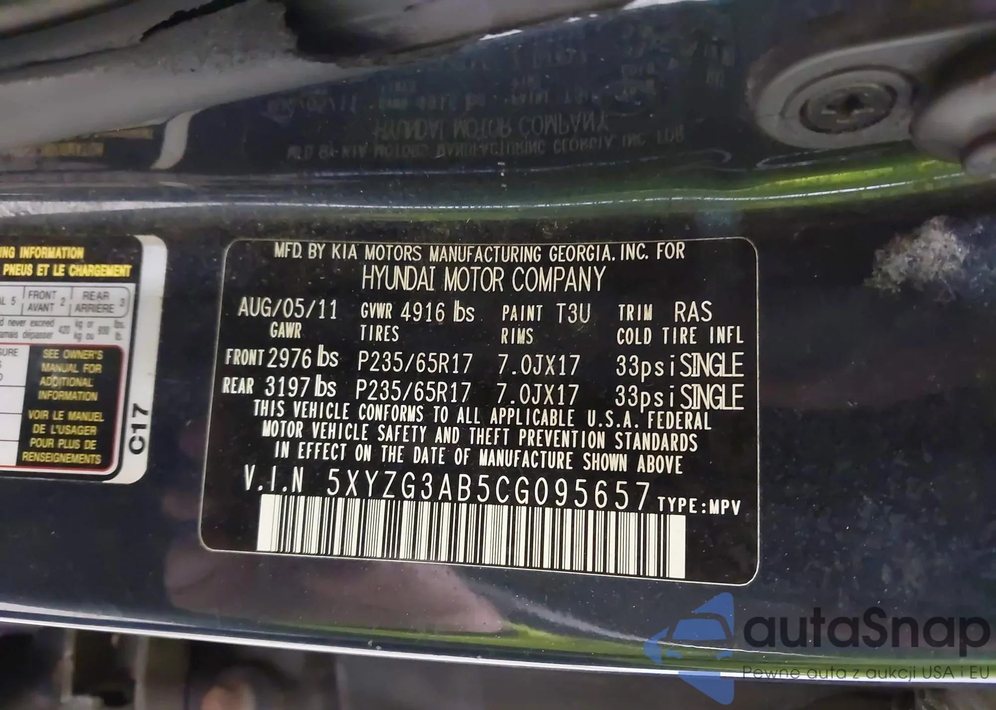 The car Hyundai Santa Fe 2012 (VIN 5XYZG3AB5CG095657) is sold by an unverified seller. We recommend checking the Carfax report and confirming registration possibilities before purchase.