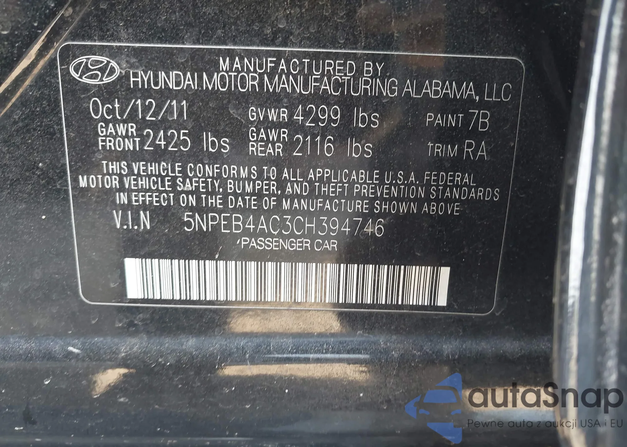 • VIN: 5NPEB4AC3CH394746