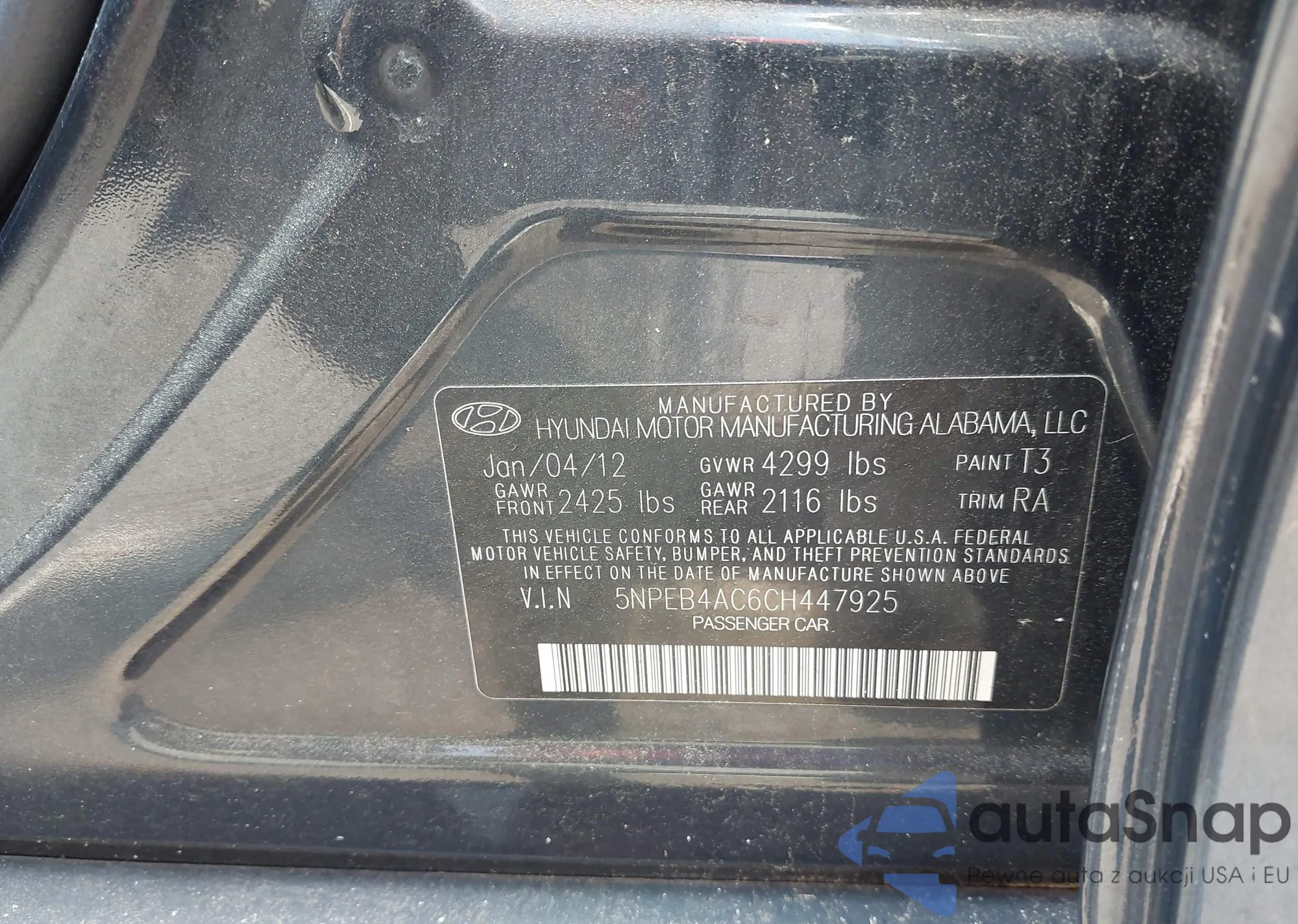 VIN: 5NPEB4AC6CH447925