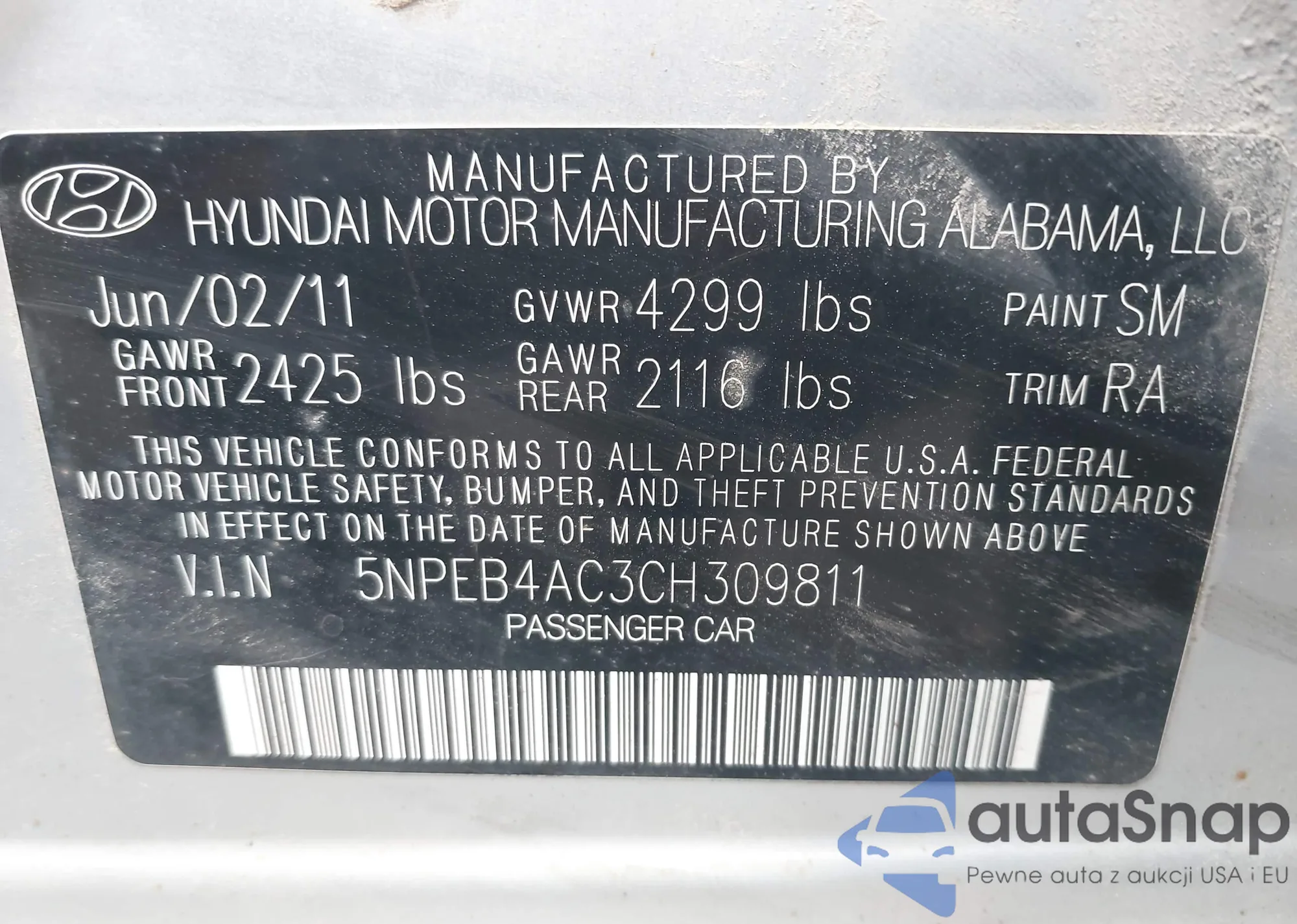 • VIN: 5NPEB4AC3CH309811
