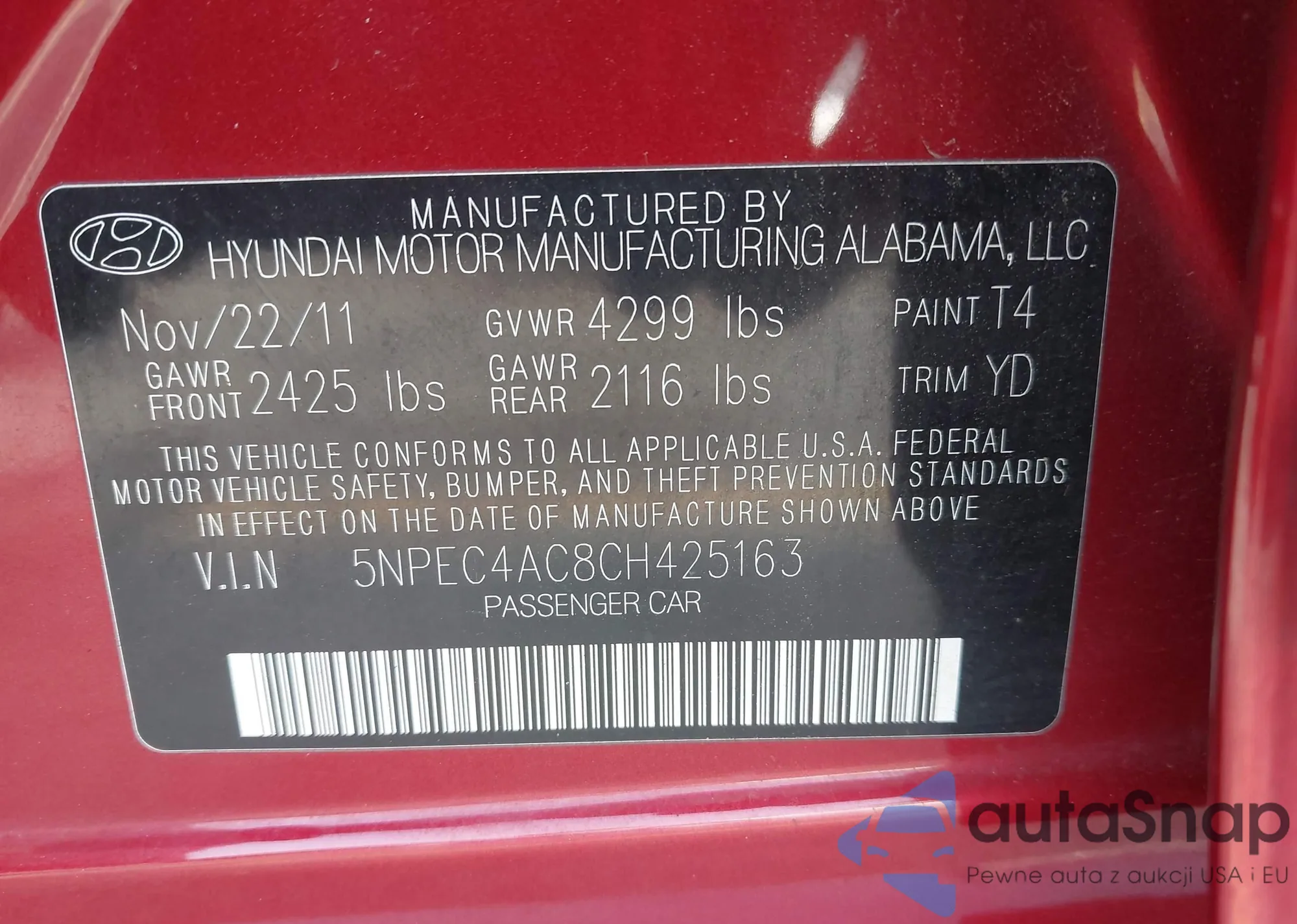 VIN: 5NPEC4AC8CH425163