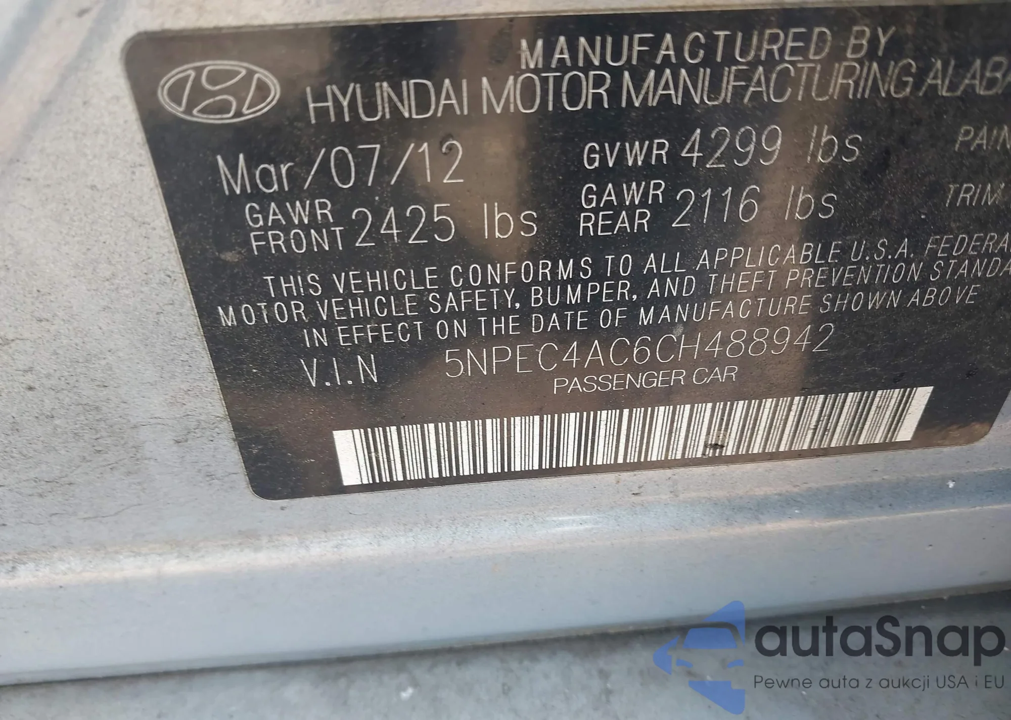 • VIN: 5NPEC4AC6CH488942
