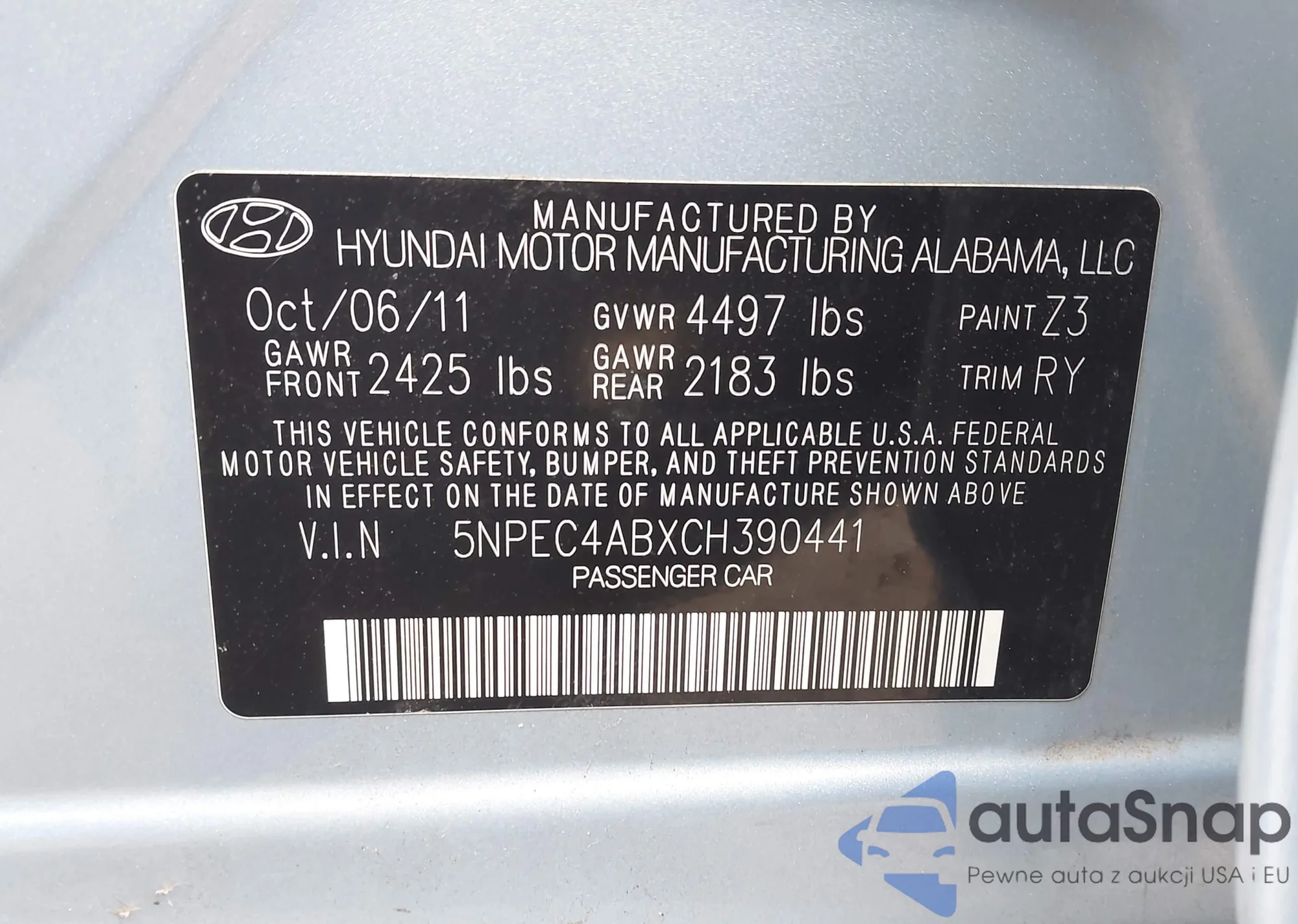VIN: 5NPEC4ABXCH390441
