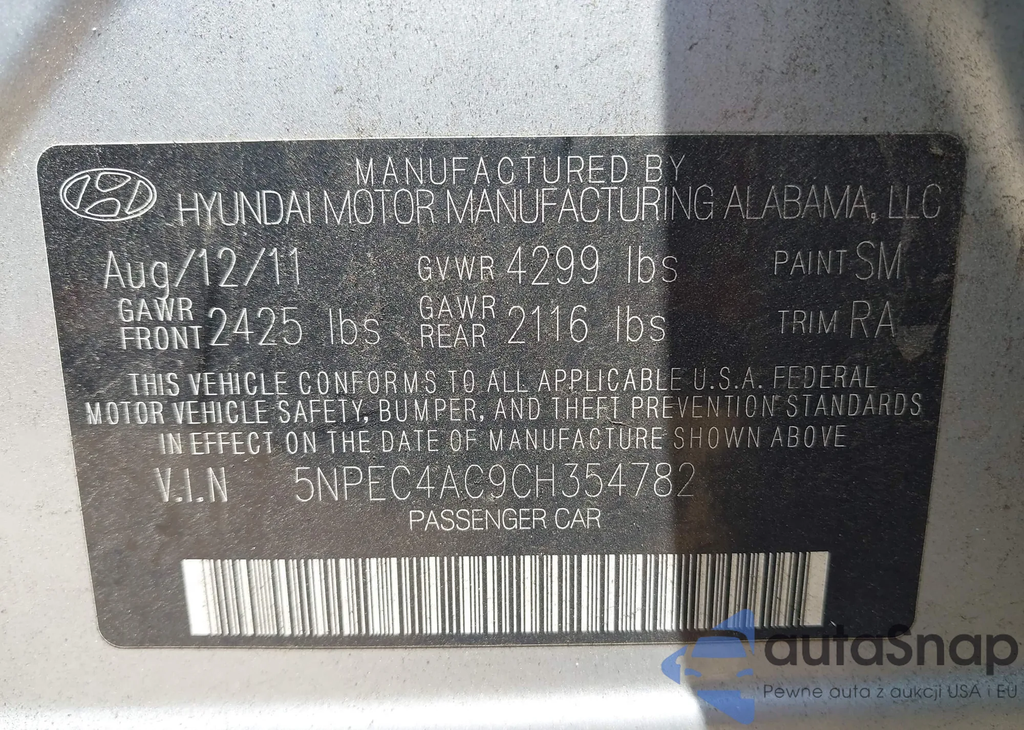 VIN: 5NPEC4AC9CH354782