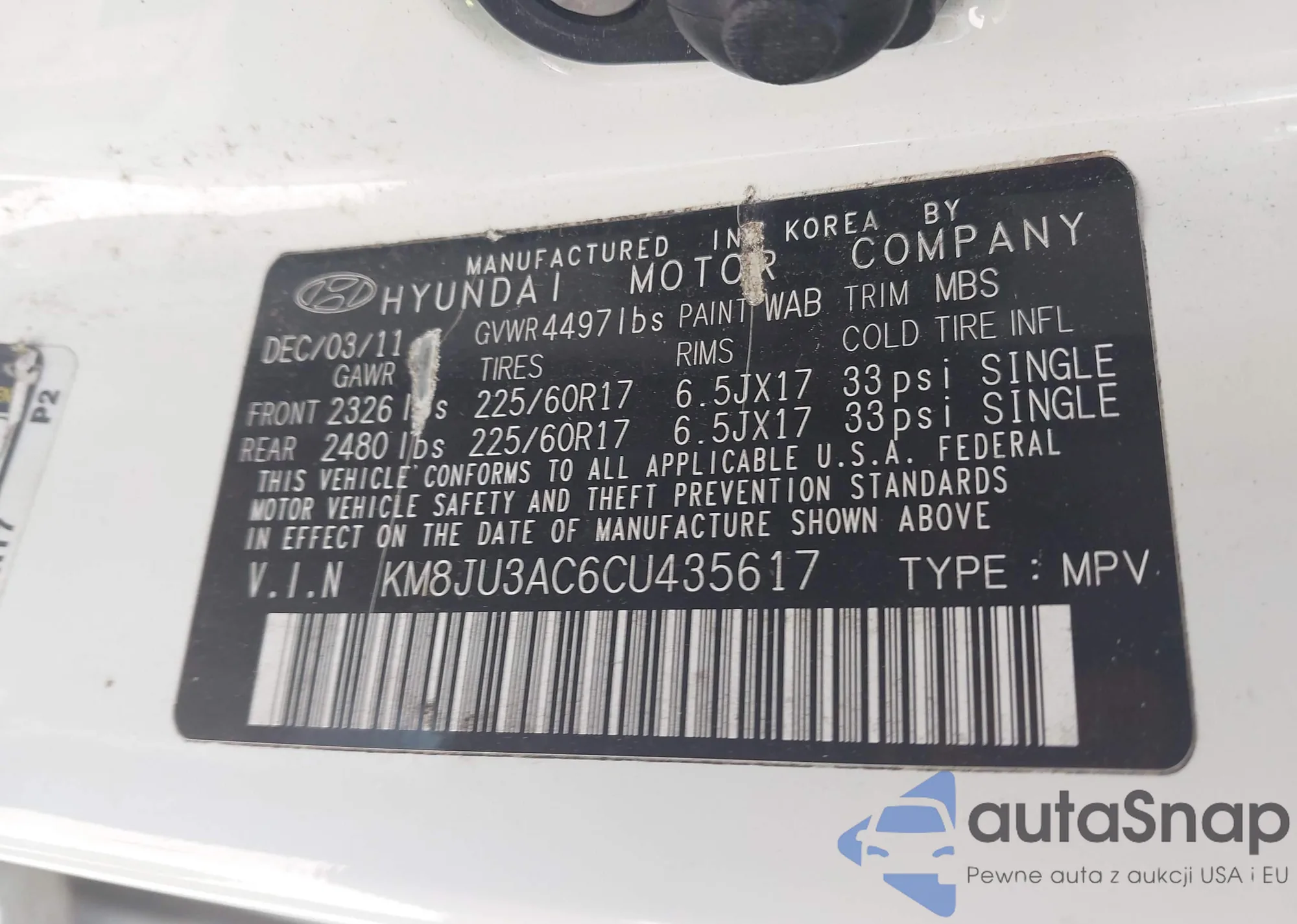 VIN: KM8JU3AC6CU435617