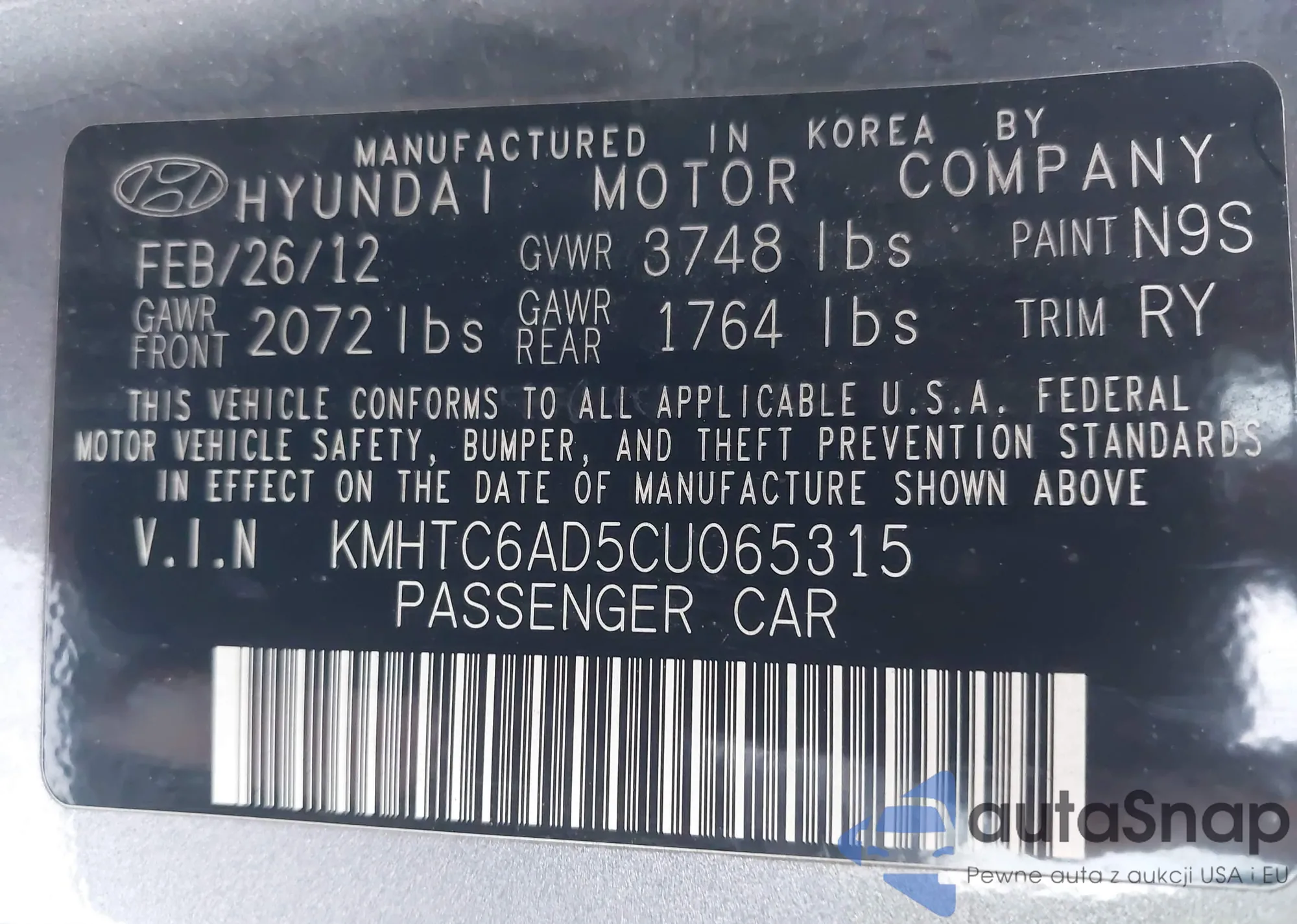 VIN: KMHTC6AD5CU065315
