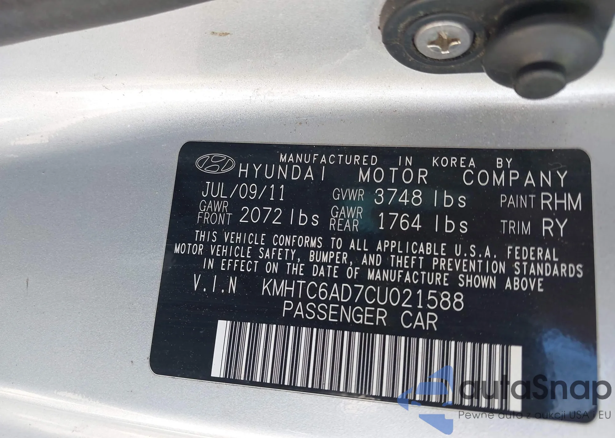 The car Hyundai Veloster 2012 (VIN KMHTC6AD7CU021588) is sold by an unverified seller. We recommend checking the Carfax report and confirming registration possibilities before purchase.