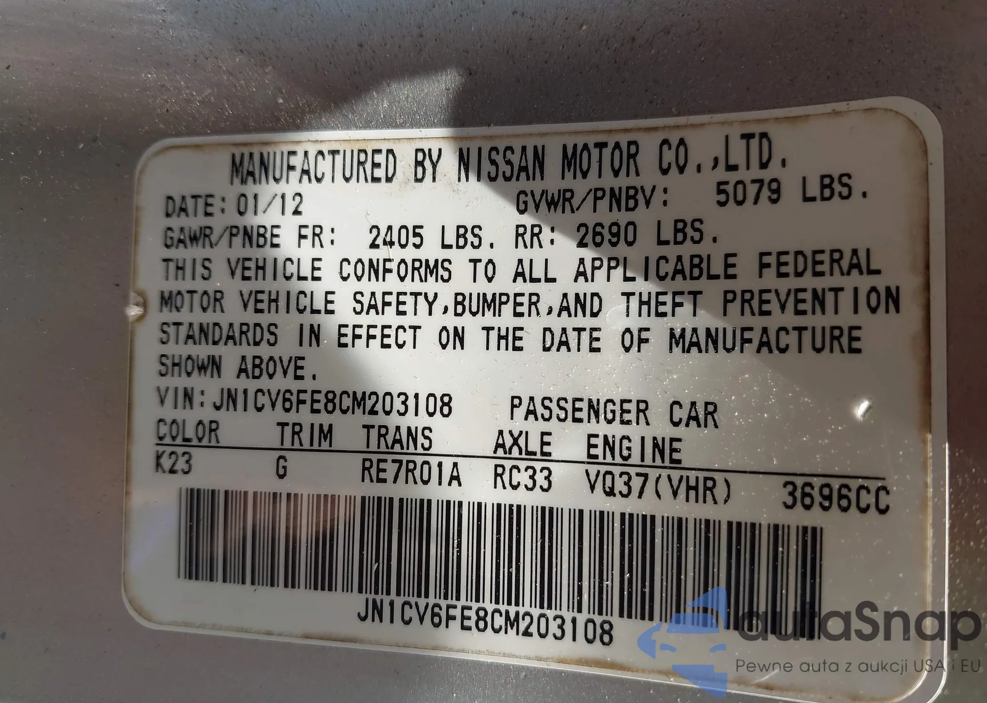 VIN: JN1CV6FE8CM203108