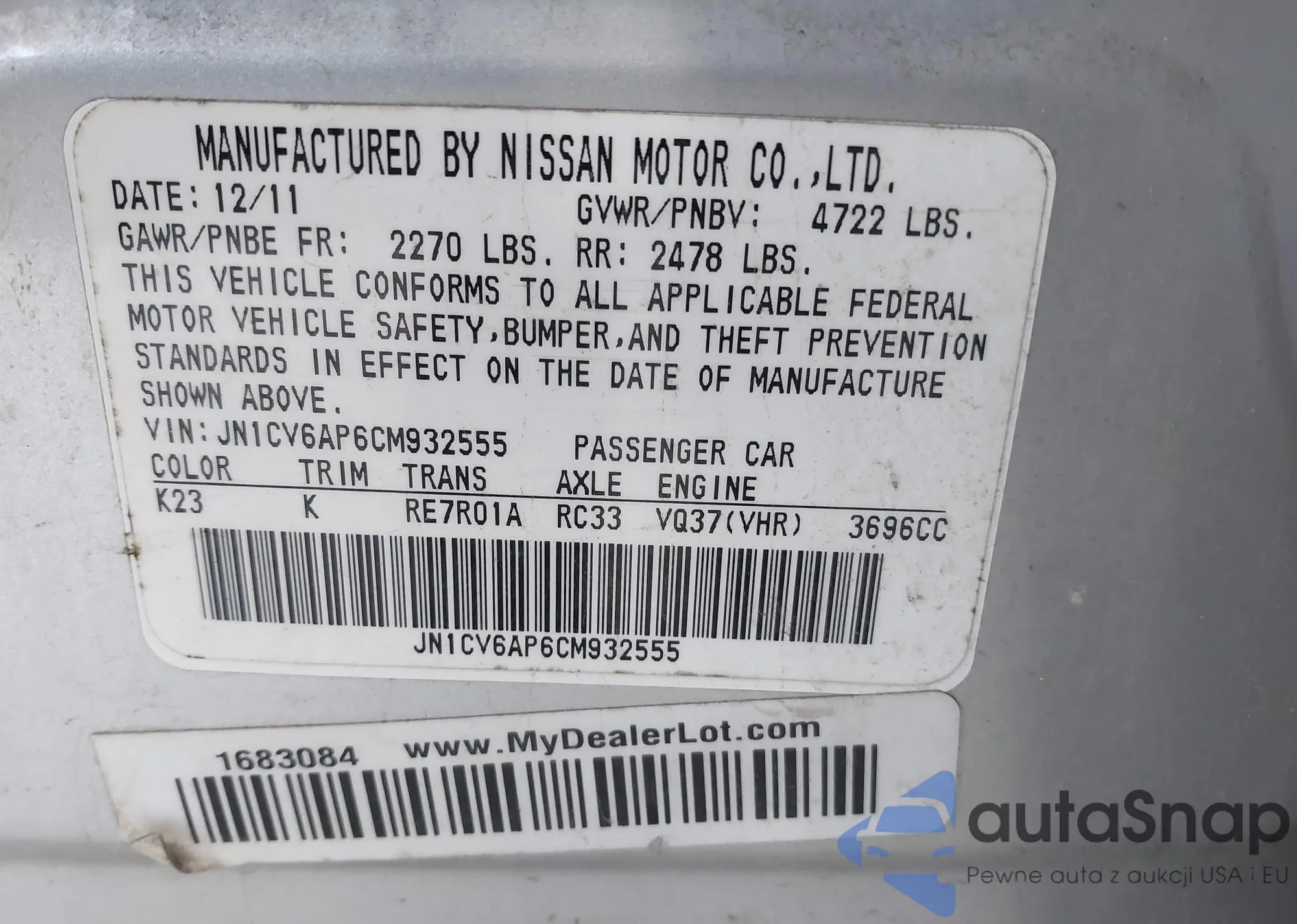 • VIN: JN1CV6AP6CM932555
