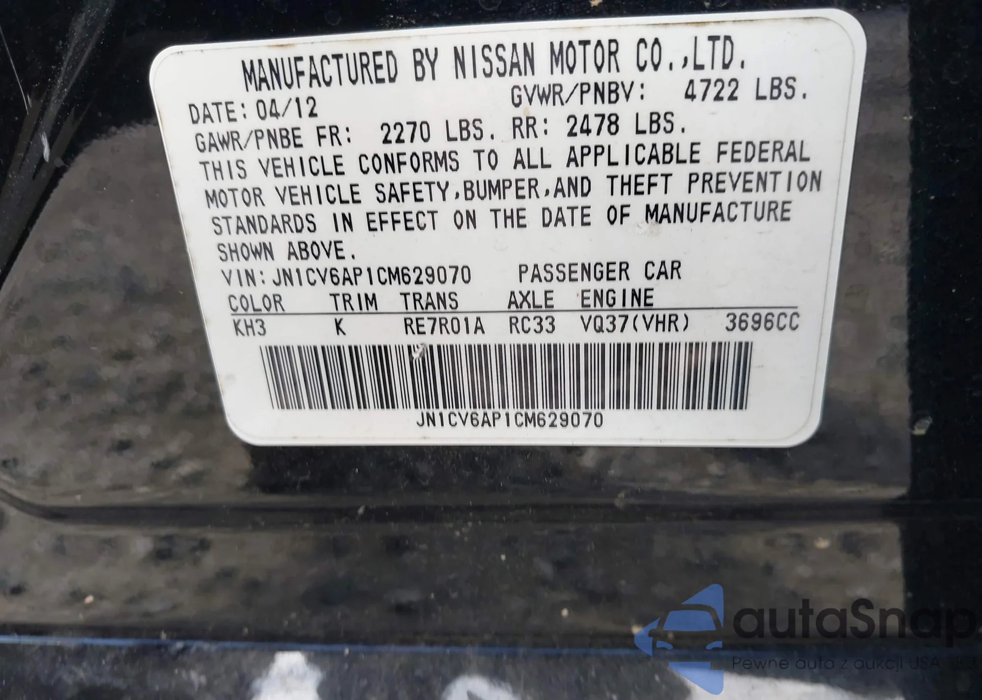• VIN: JN1CV6AP1CM629070