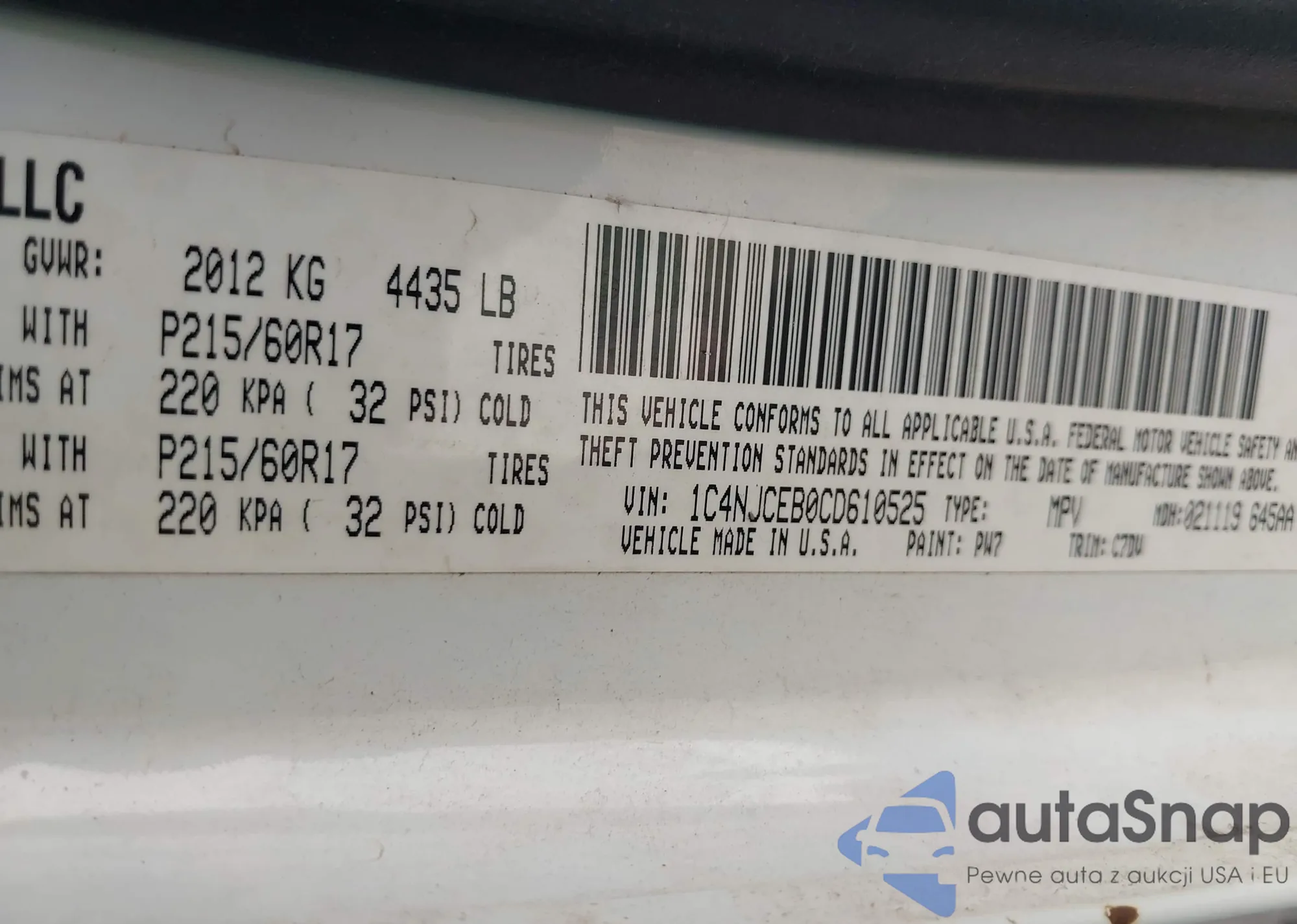 VIN: 1C4NJCEB0CD610525