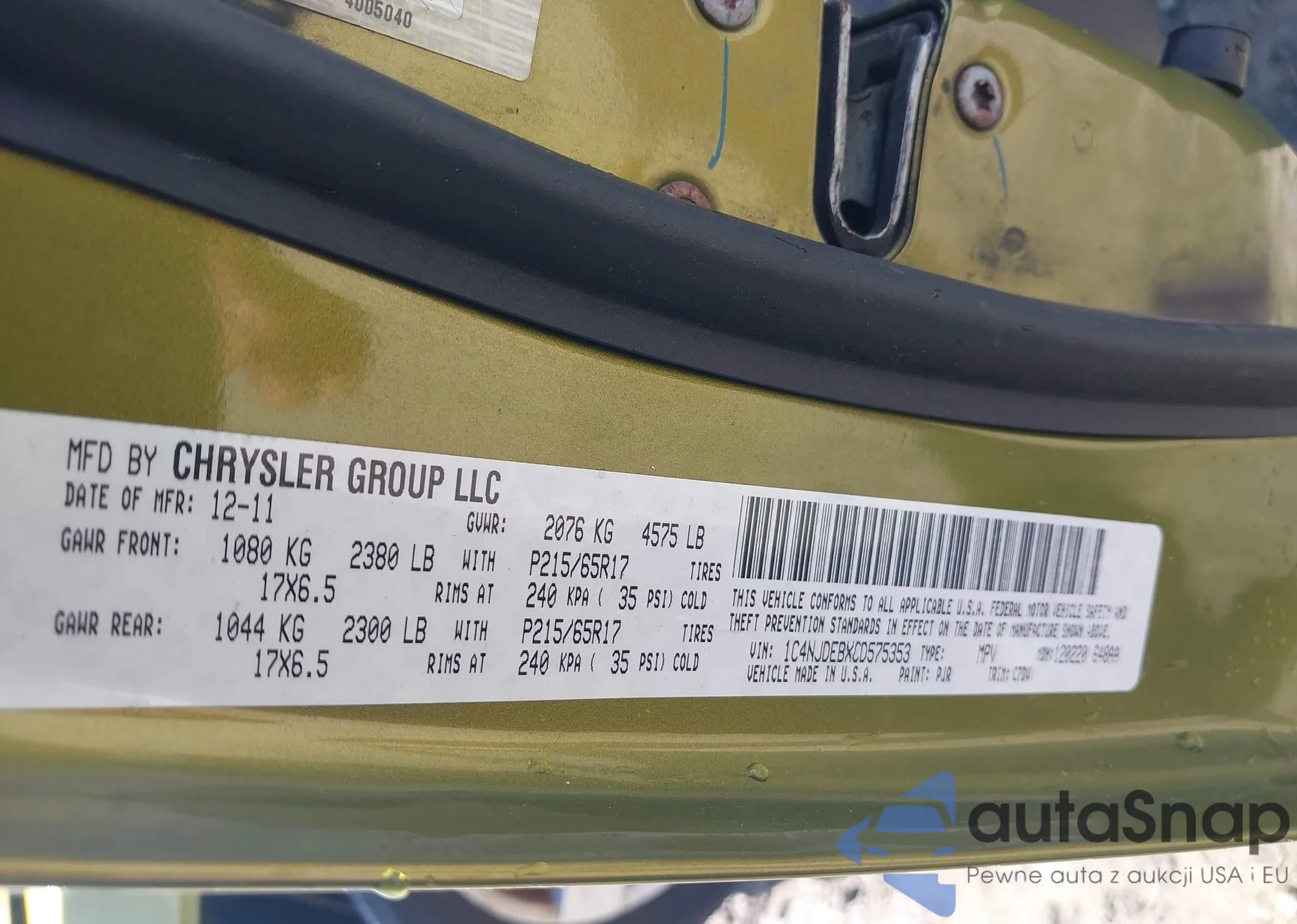 • VIN: 1C4NJDEBXCD575353