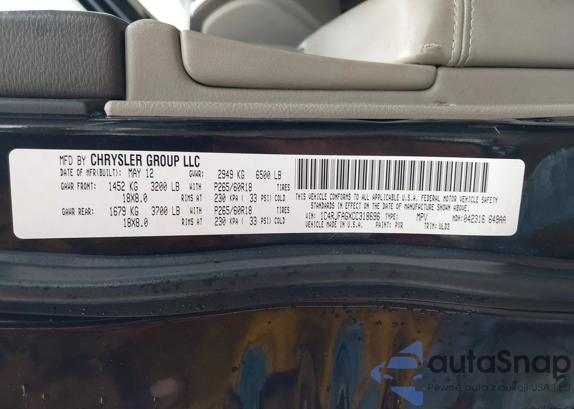 • VIN: 1C4RJFAGXCC318696