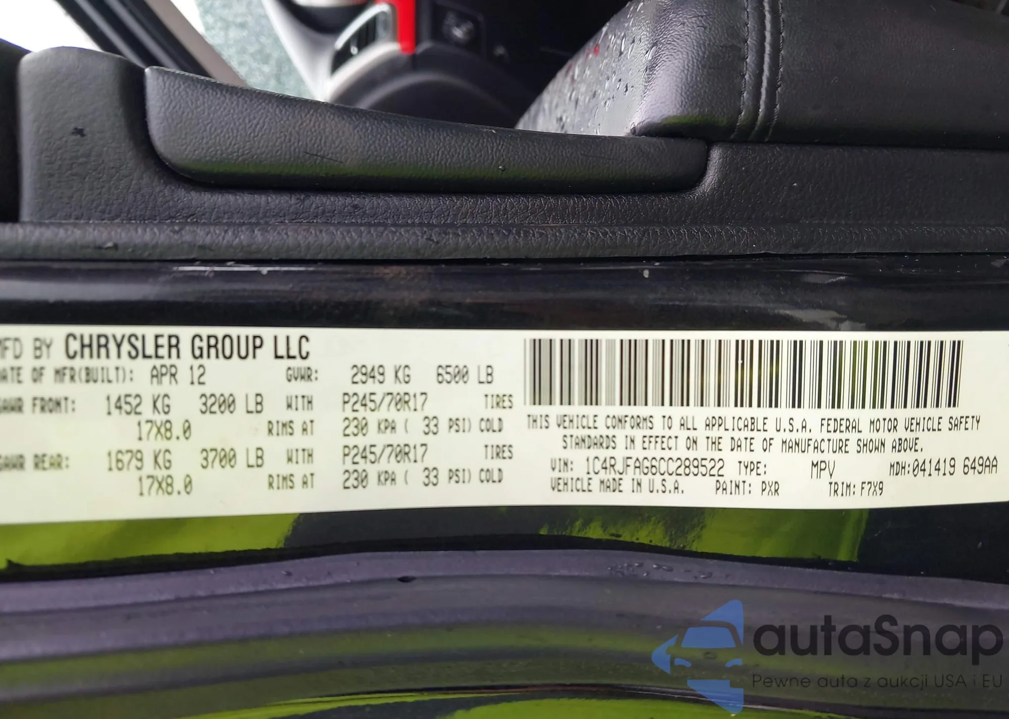• VIN: 1C4RJFAG6CC289522
