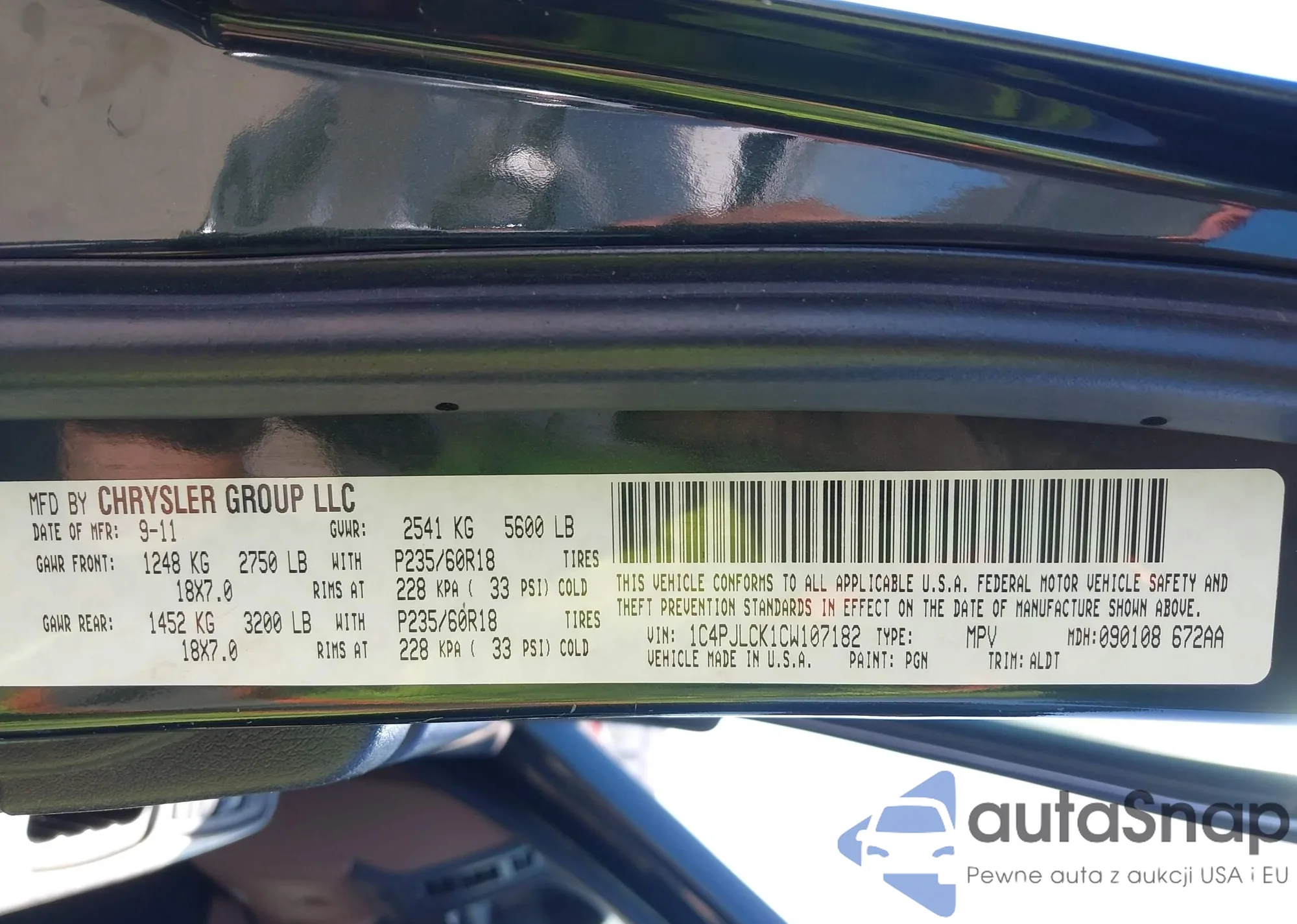 • VIN: 1C4PJLCK1CW107182