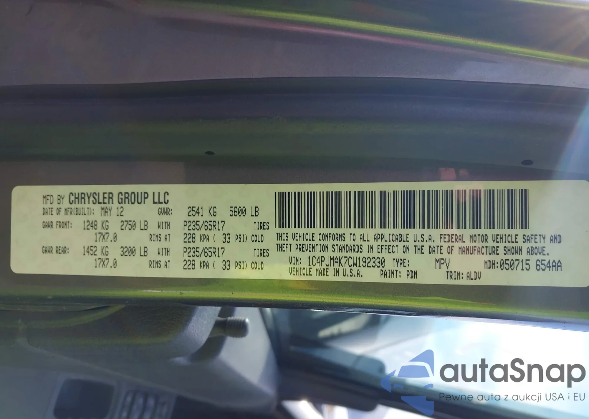 VIN: 1C4PJMAK7CW192330