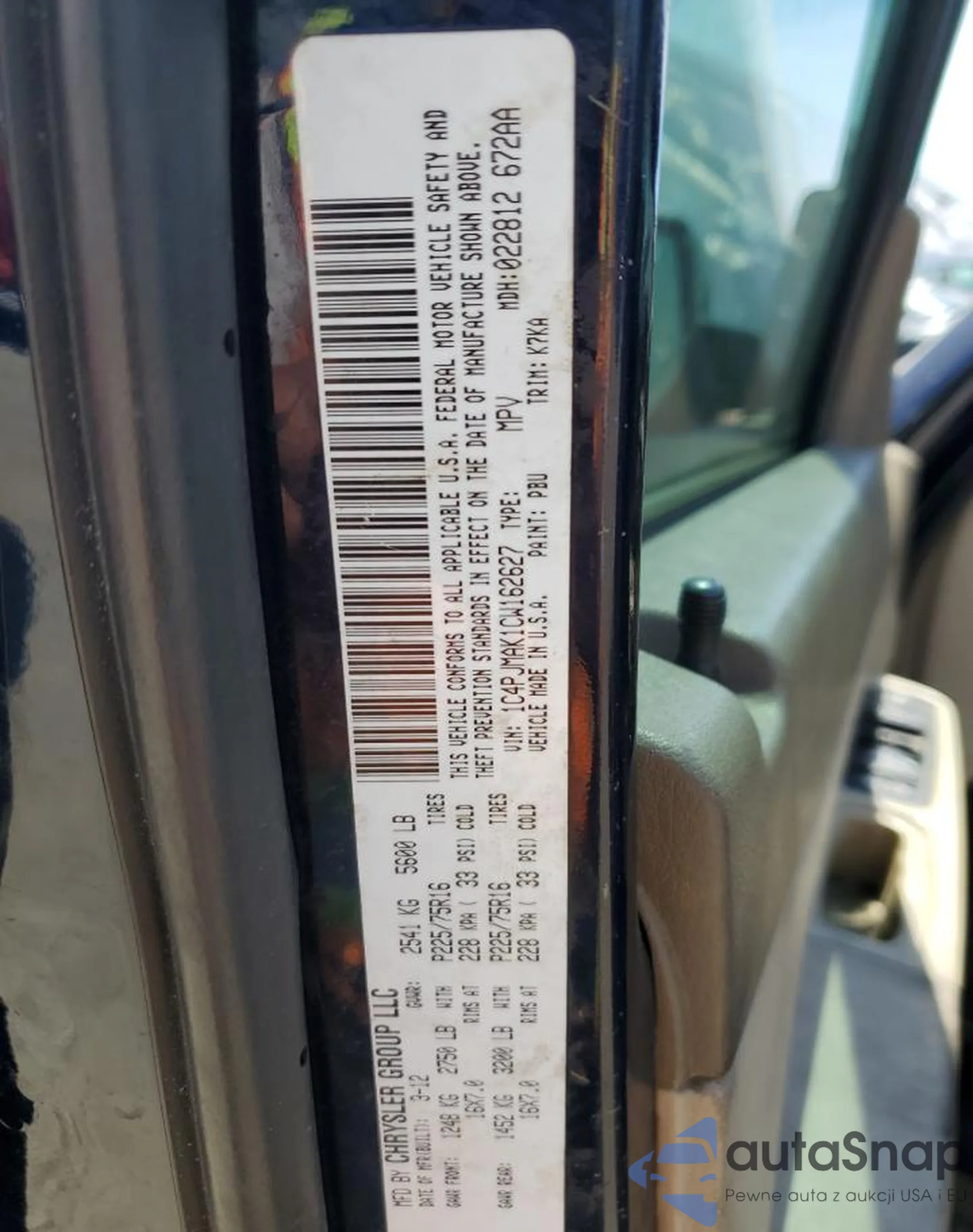 VIN: 1C4PJMAK1CW162627