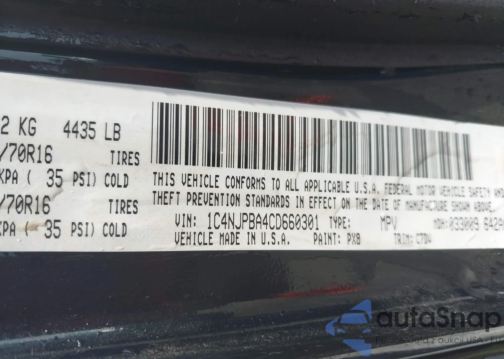 • VIN: 1C4NJPBA4CD660301
