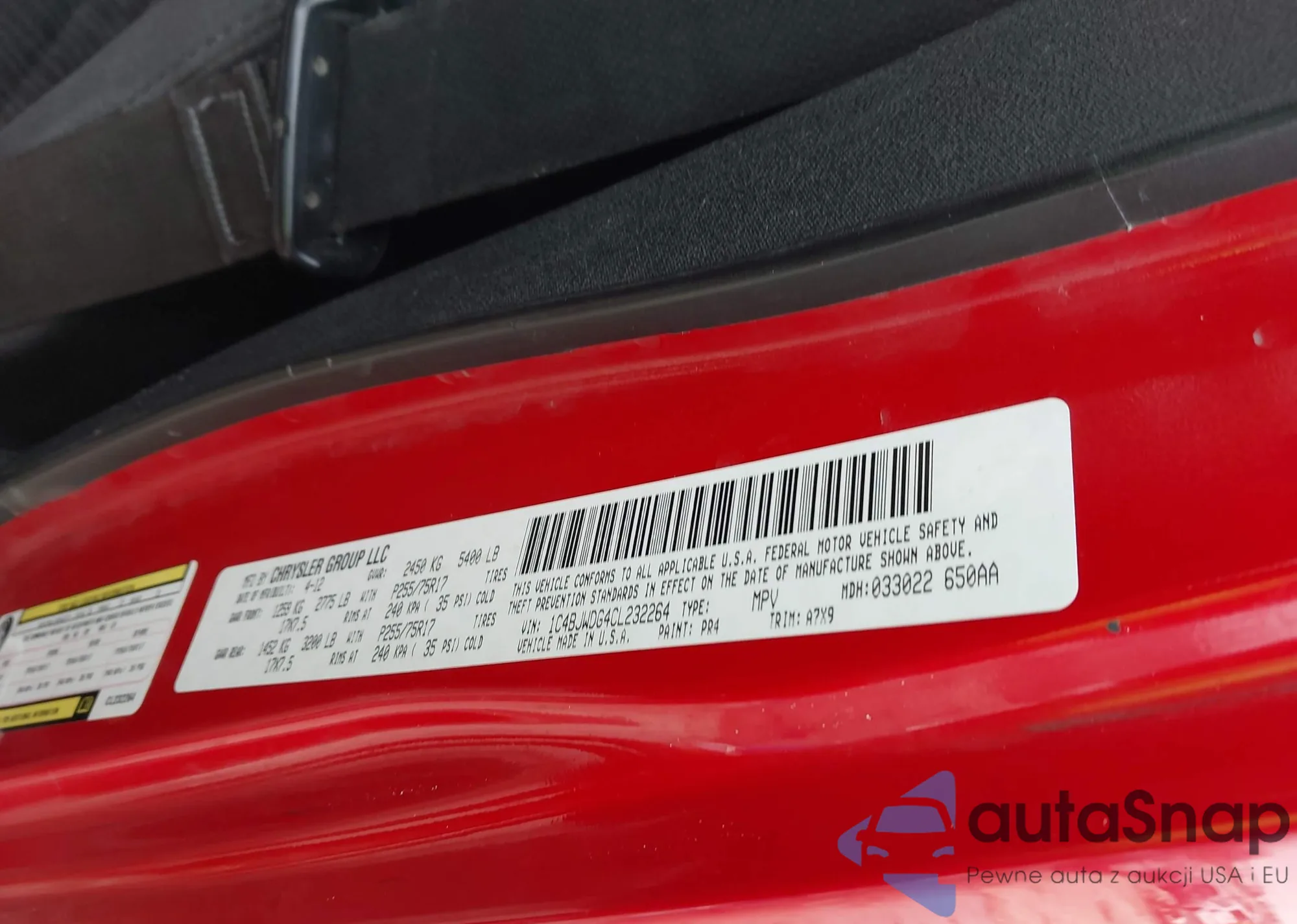 • VIN: 1C4BJWDG4CL232264