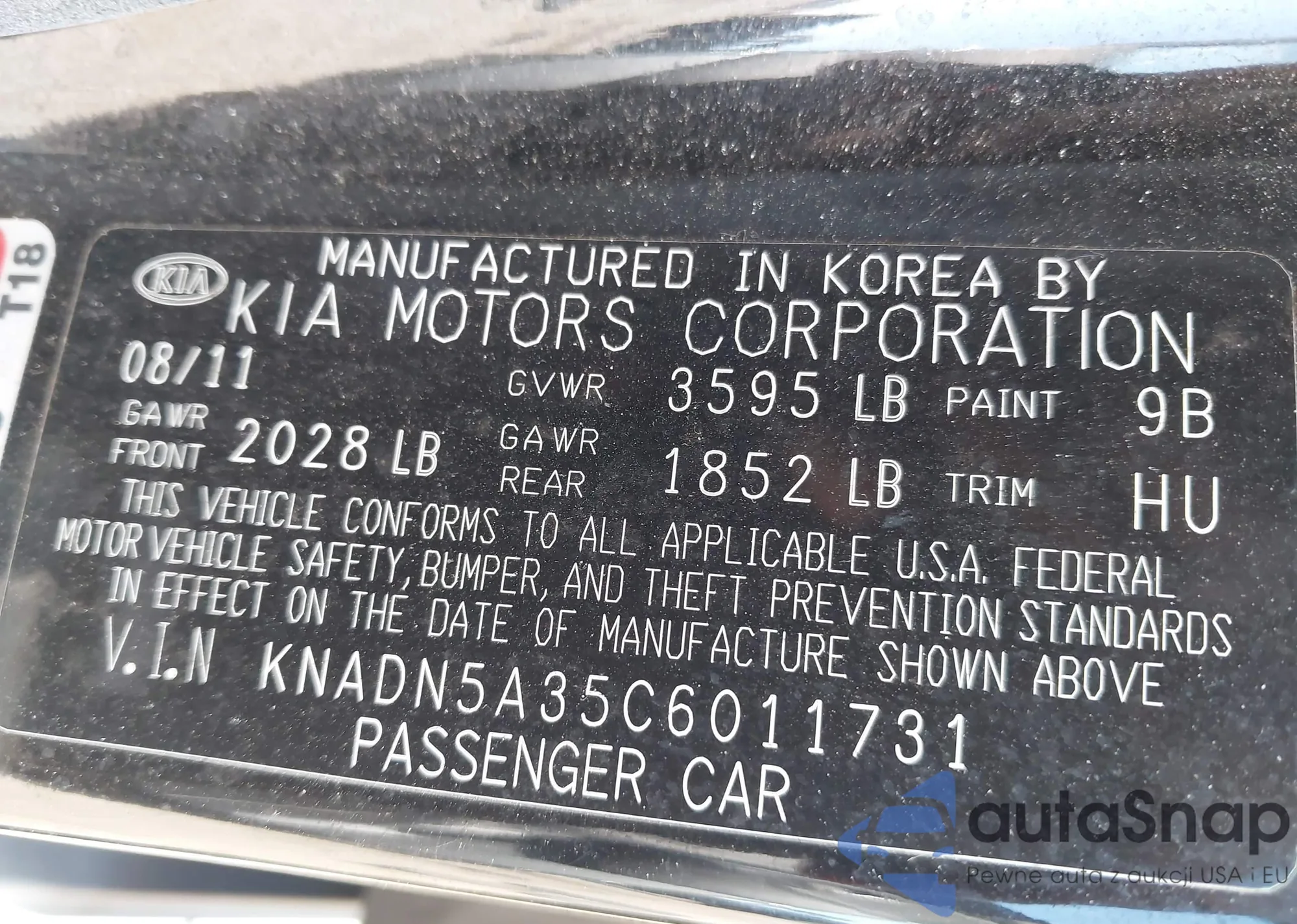 VIN: KNADN5A35C6011731