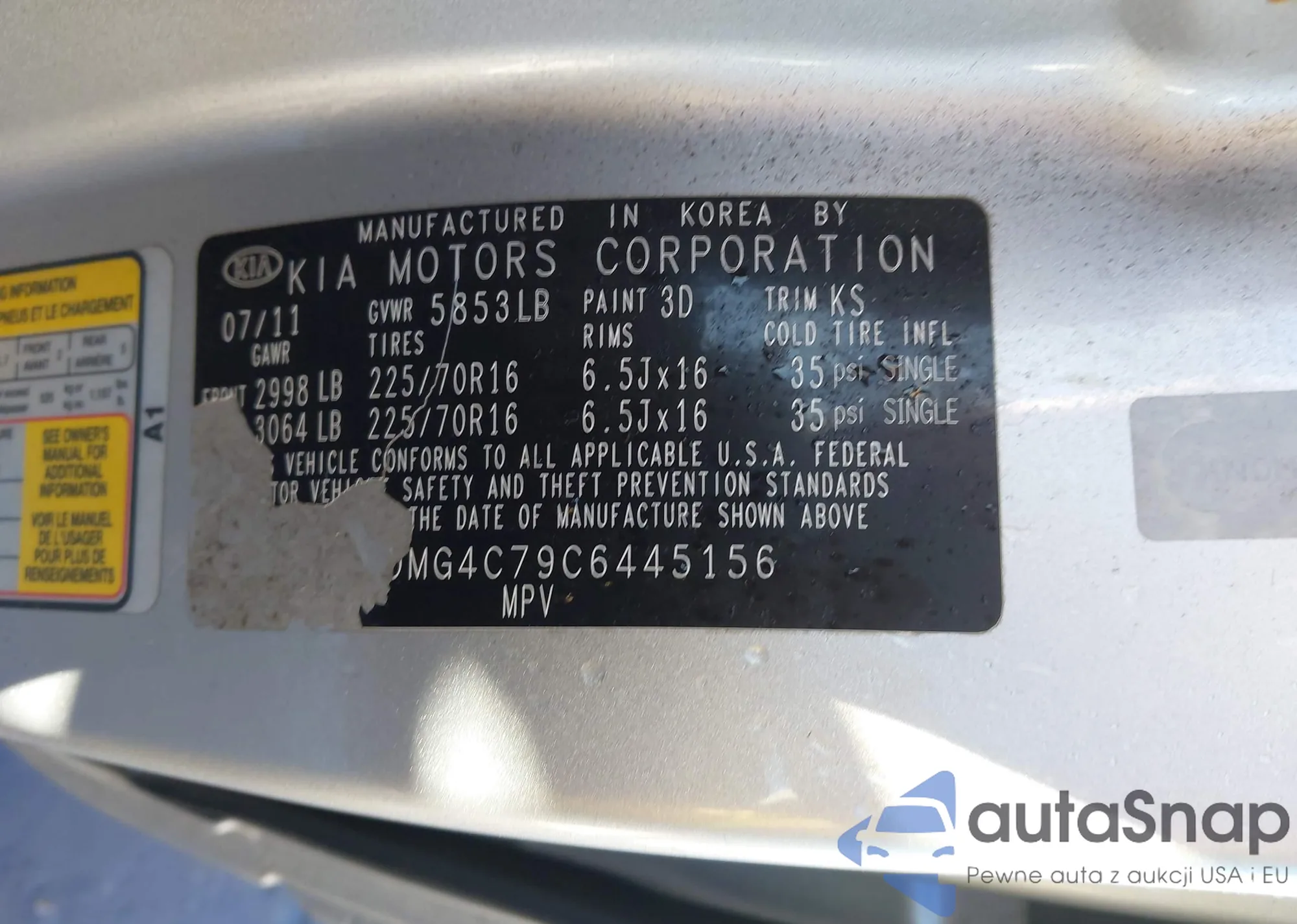 The car Kia Sedona 2012 (VIN KNDMG4C79C6445156) has not been auctioned before. The documents are clean, and the mileage matches or is below the market average. Sold by an insurance company – we recommend purchase. Delivery to the port will take approx. 6–8 weeks.