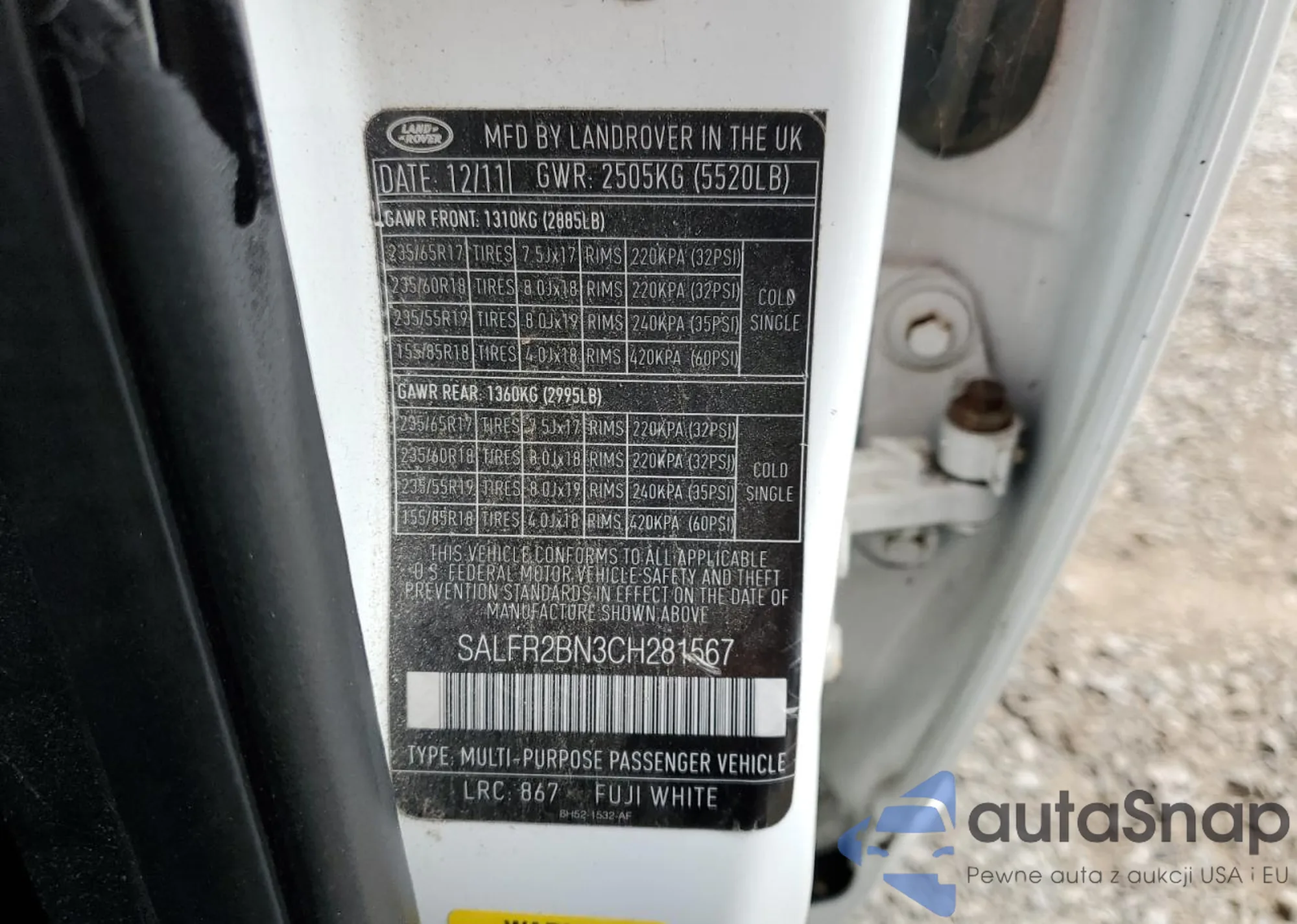 The car Land Rover LR2 2012 (VIN SALFR2BN3CH281567) is sold by an unverified seller. We recommend checking the Carfax report and confirming registration possibilities before purchase.