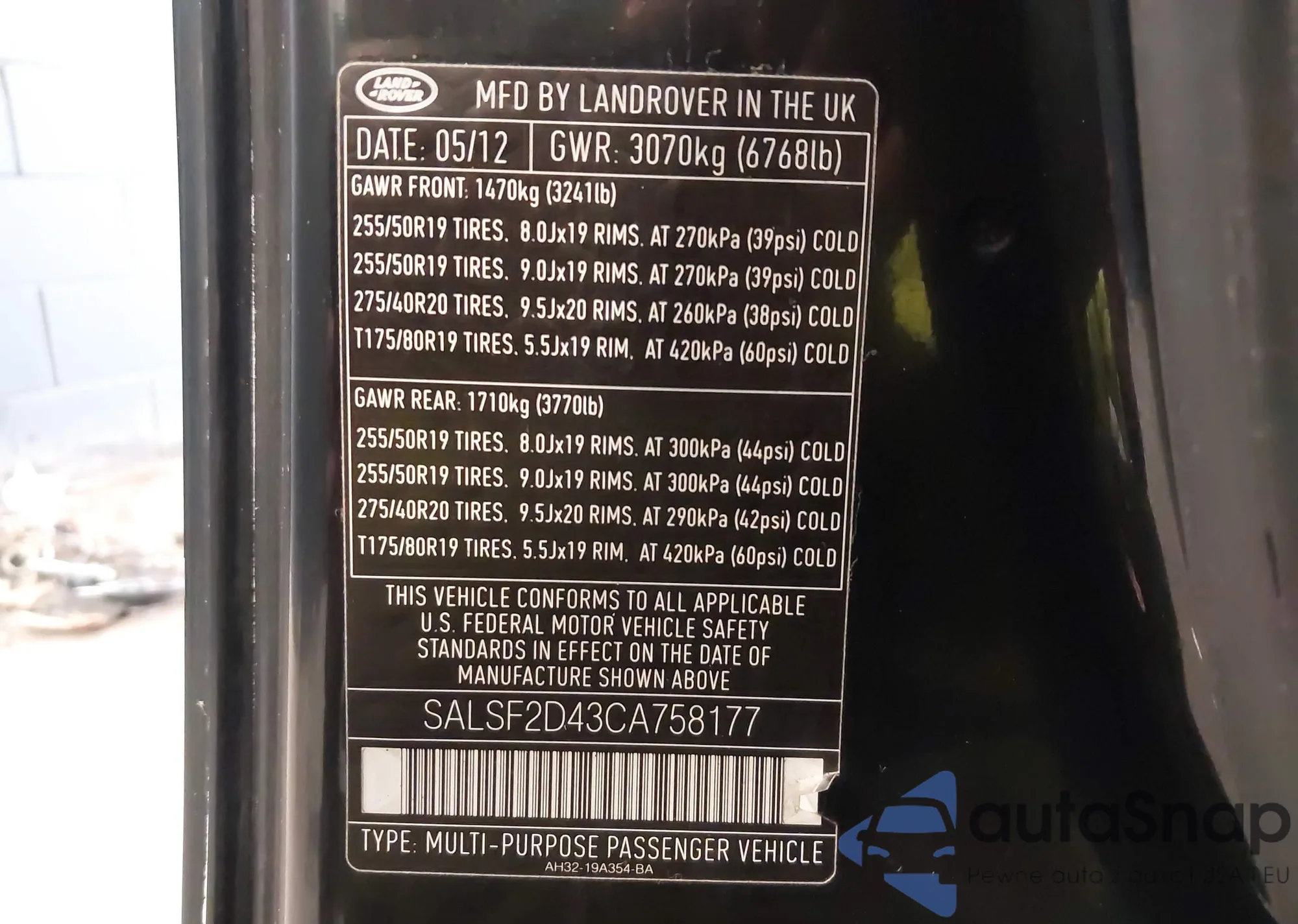 VIN: SALSF2D43CA758177