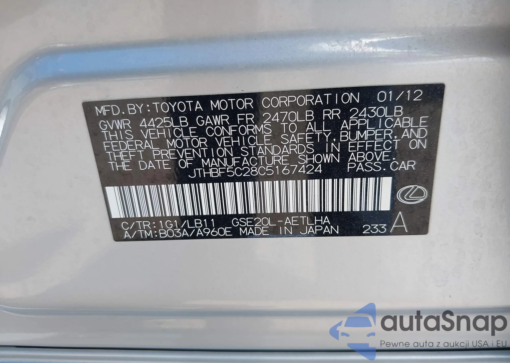 VIN: JTHBF5C28C5167424