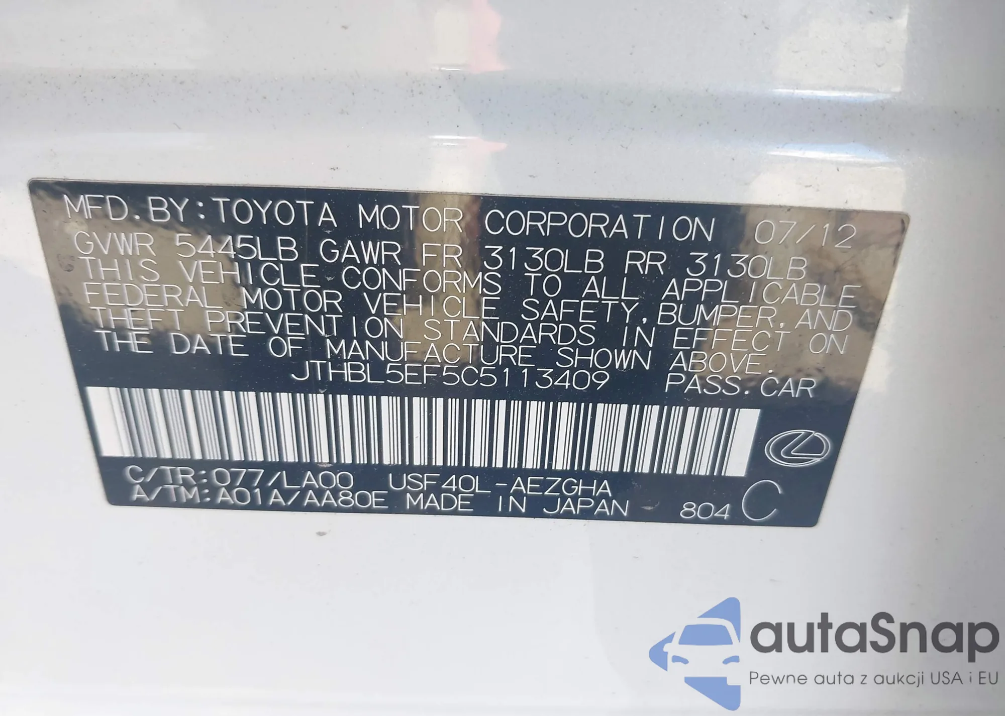 JTHBL5EF5C5113409 IAAI