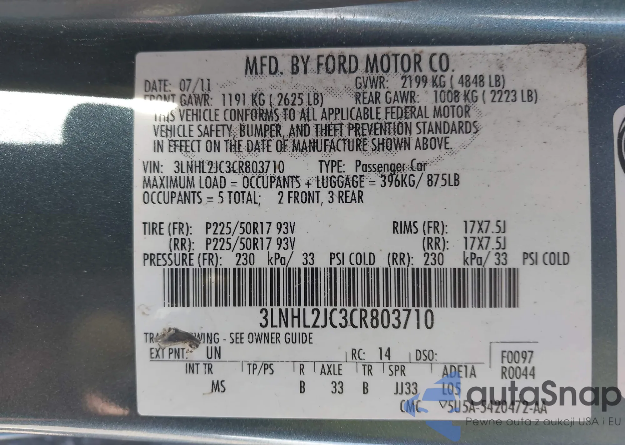 VIN: 3LNHL2JC3CR803710