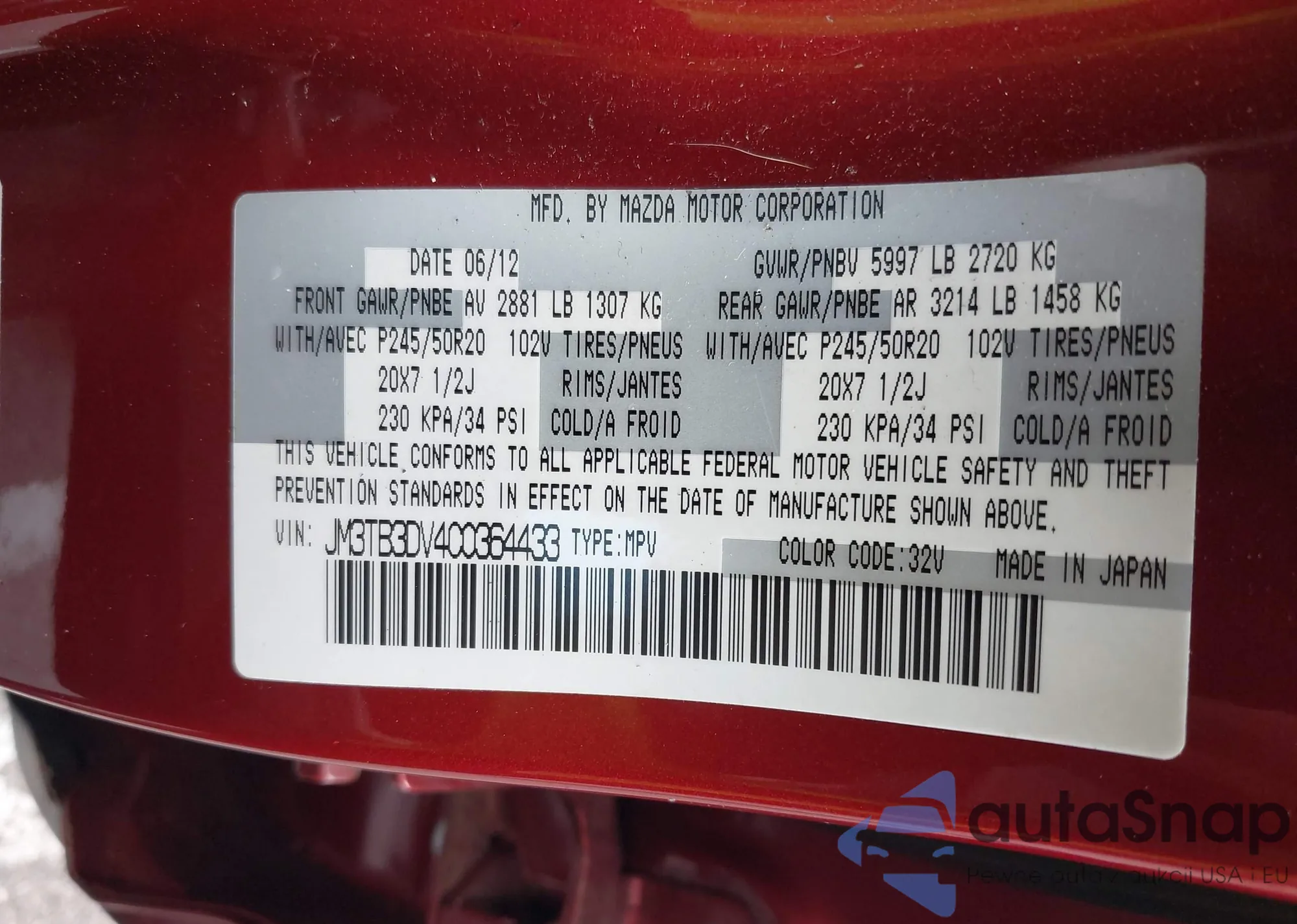 VIN: JM3TB3DV4C0364433