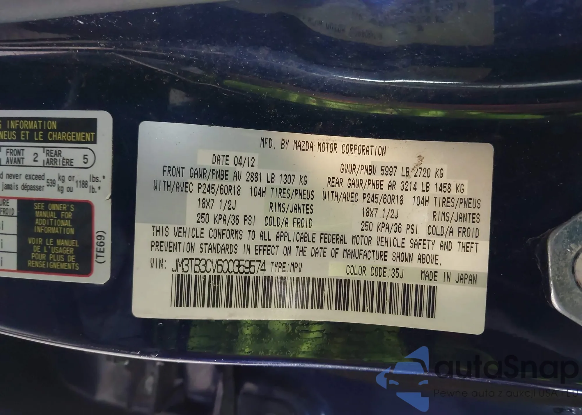 VIN: JM3TB3CV6C0359574
