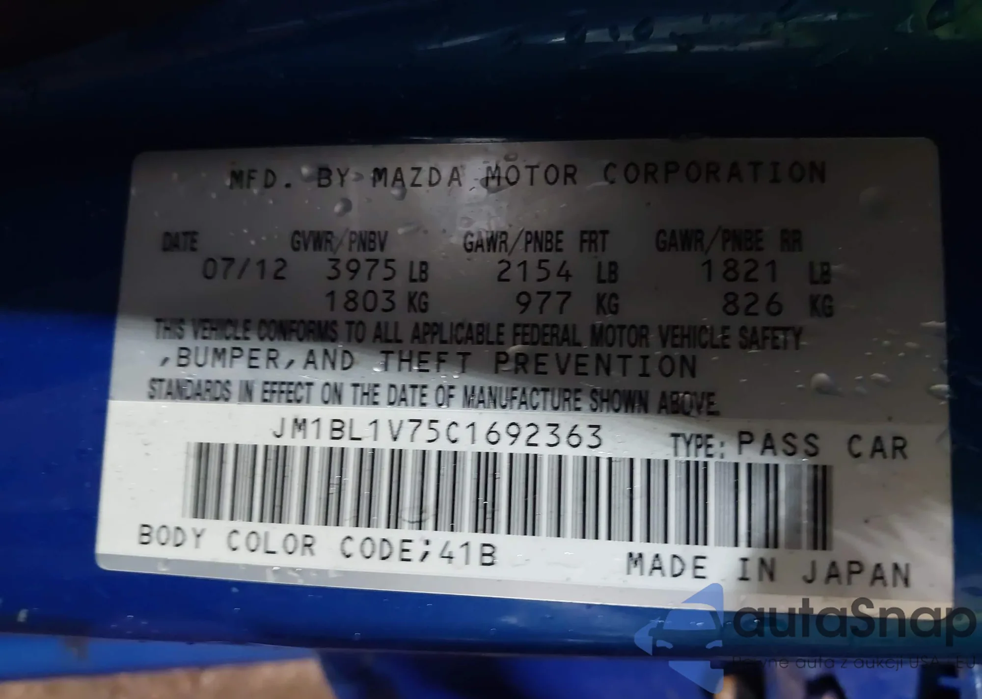 VIN: JM1BL1V75C1692363