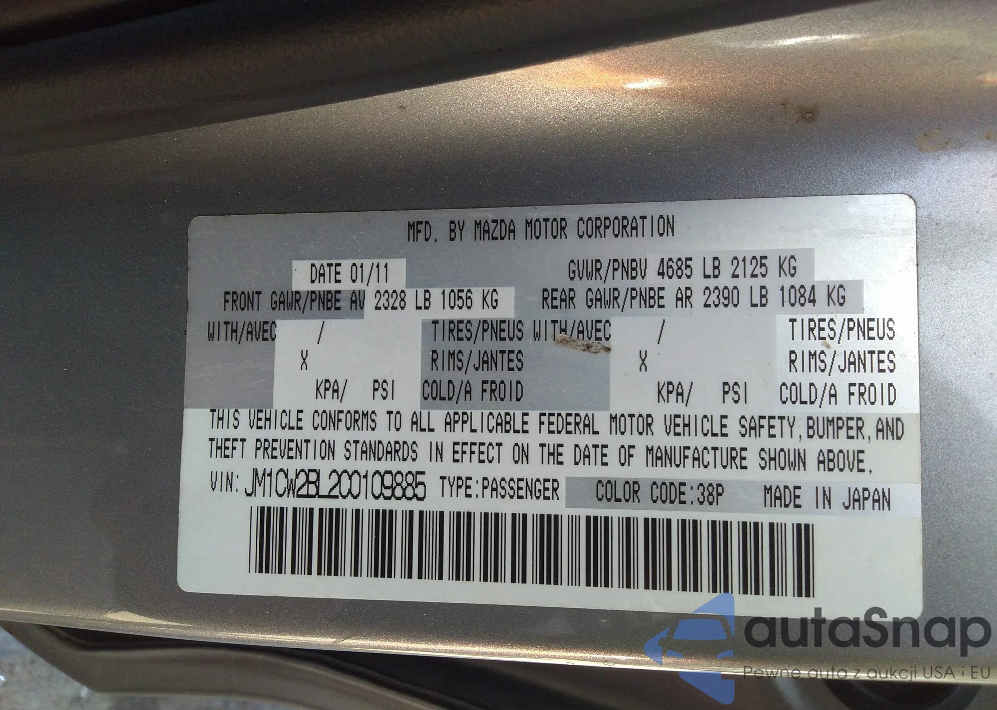 • VIN: JM1CW2BL2C0109885