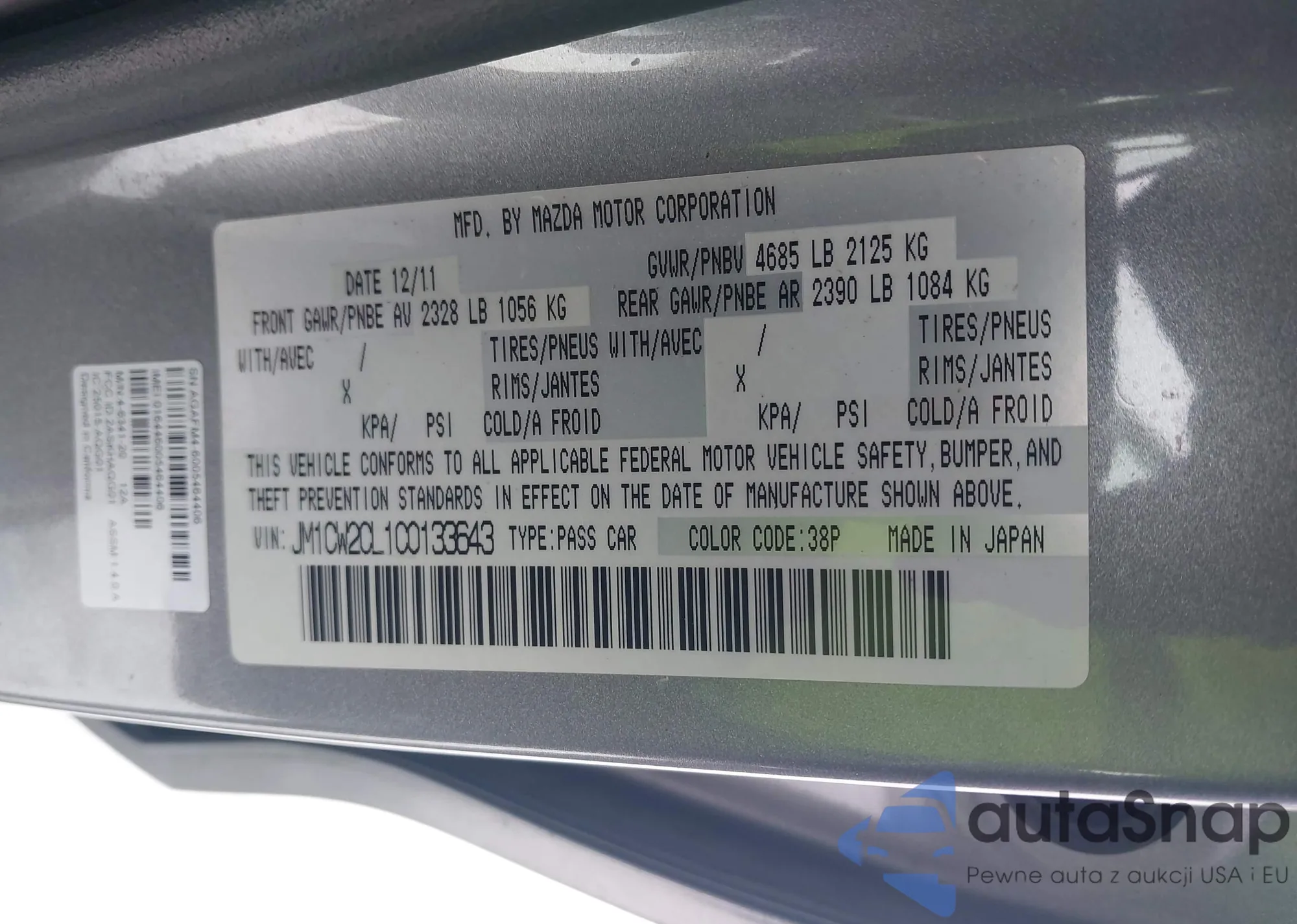 • VIN: JM1CW2CL1C0133643