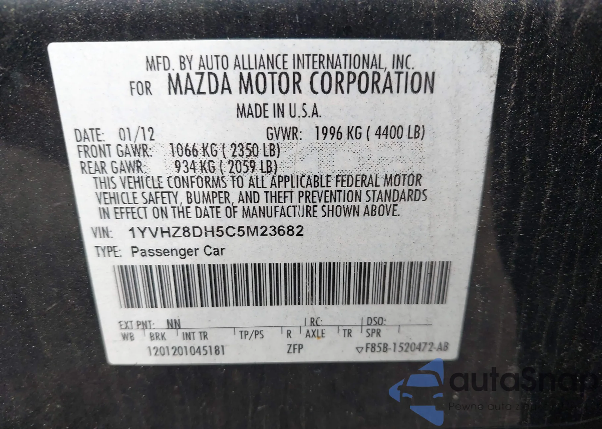 VIN: 1YVHZ8DH5C5M23682