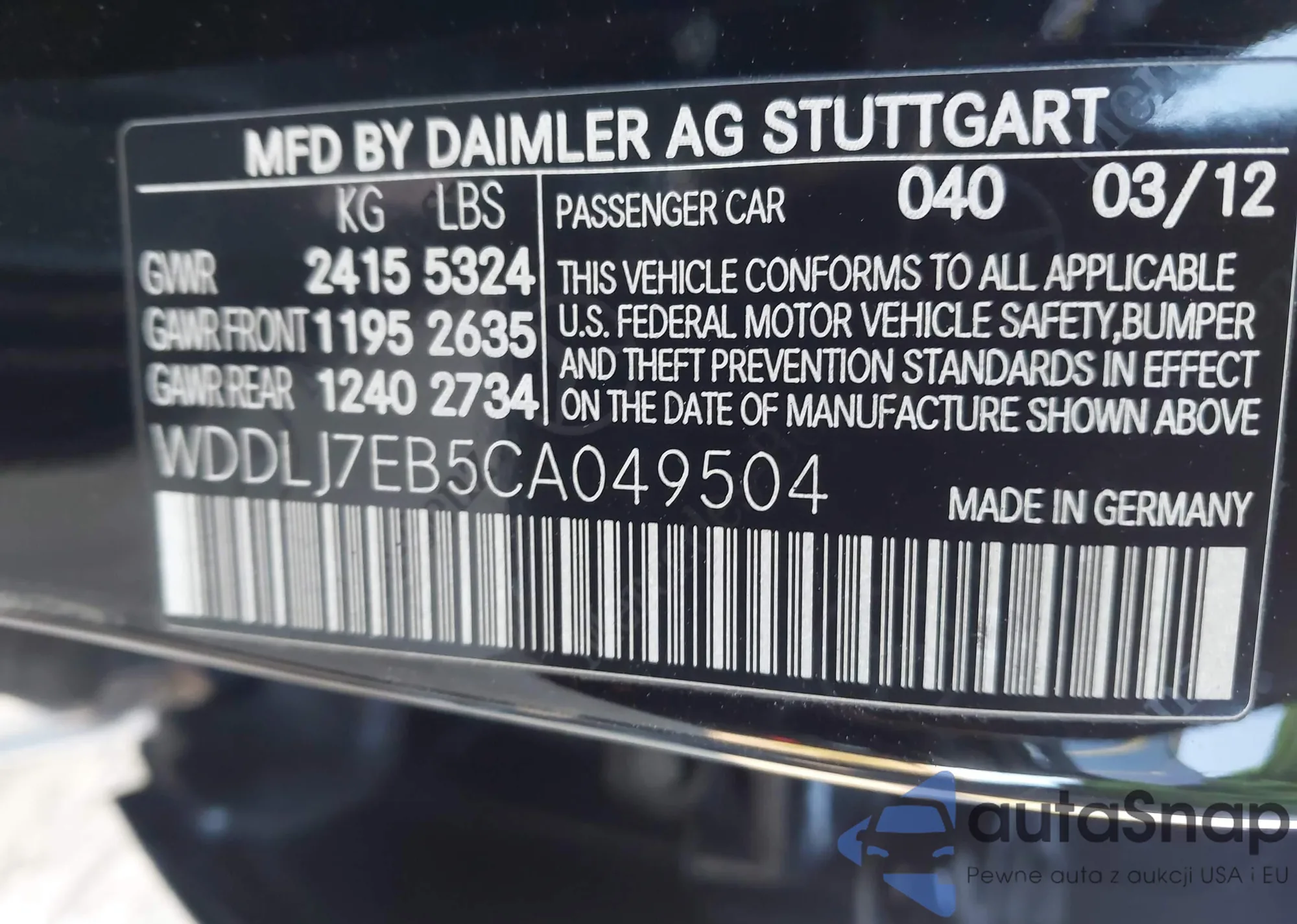 VIN: WDDLJ7EB5CA049504