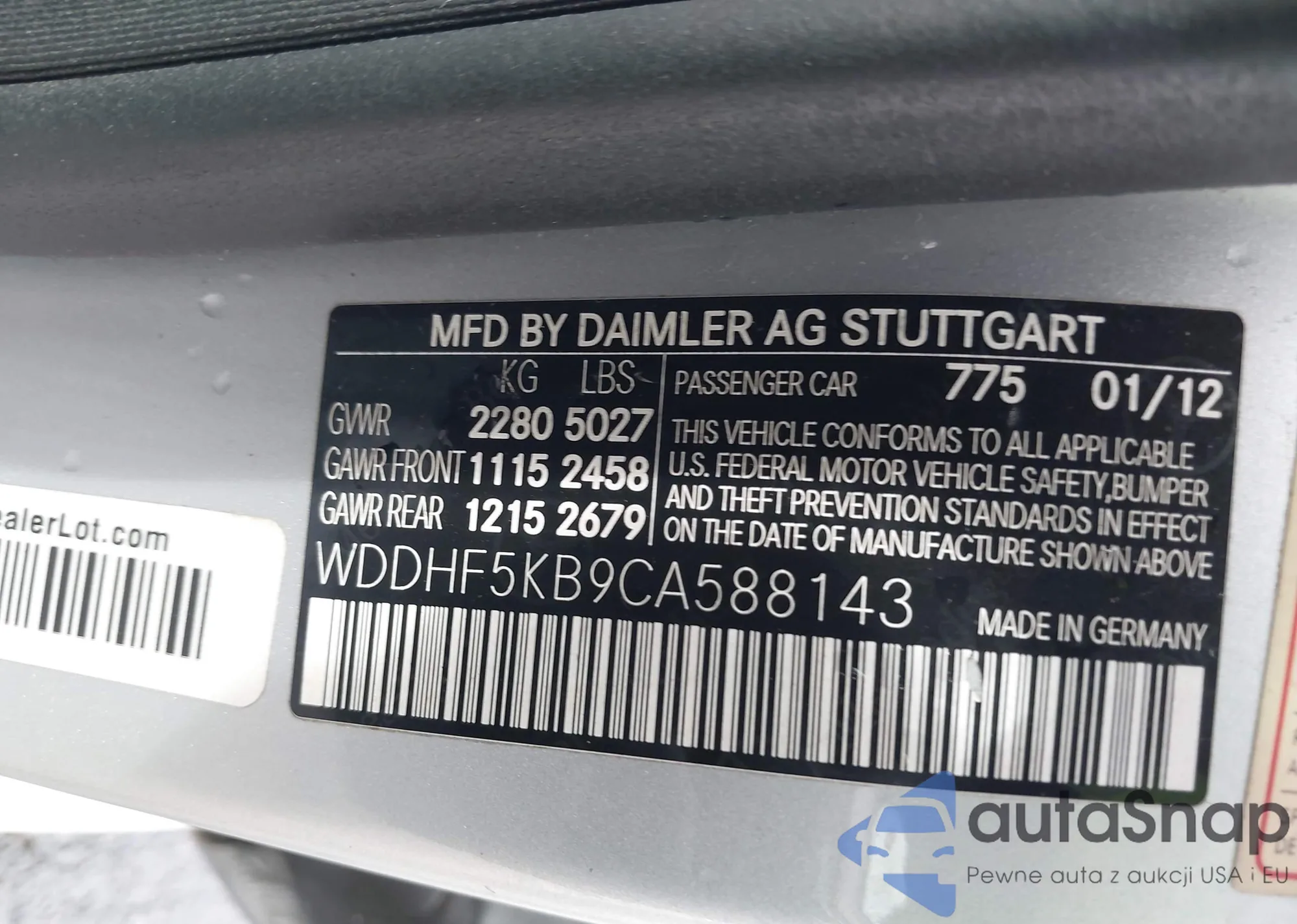 • VIN: WDDHF5KB9CA588143
