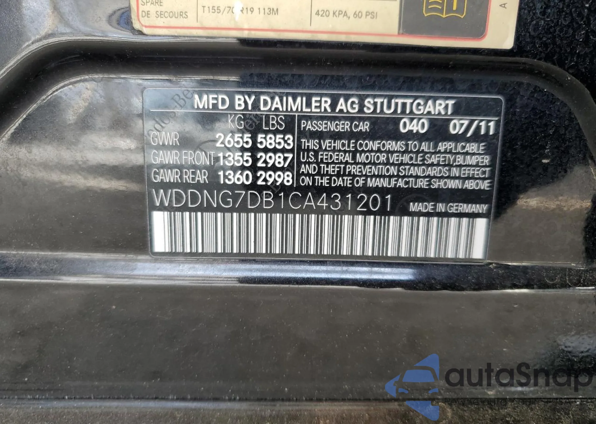 VIN: WDDNG7DB1CA431201