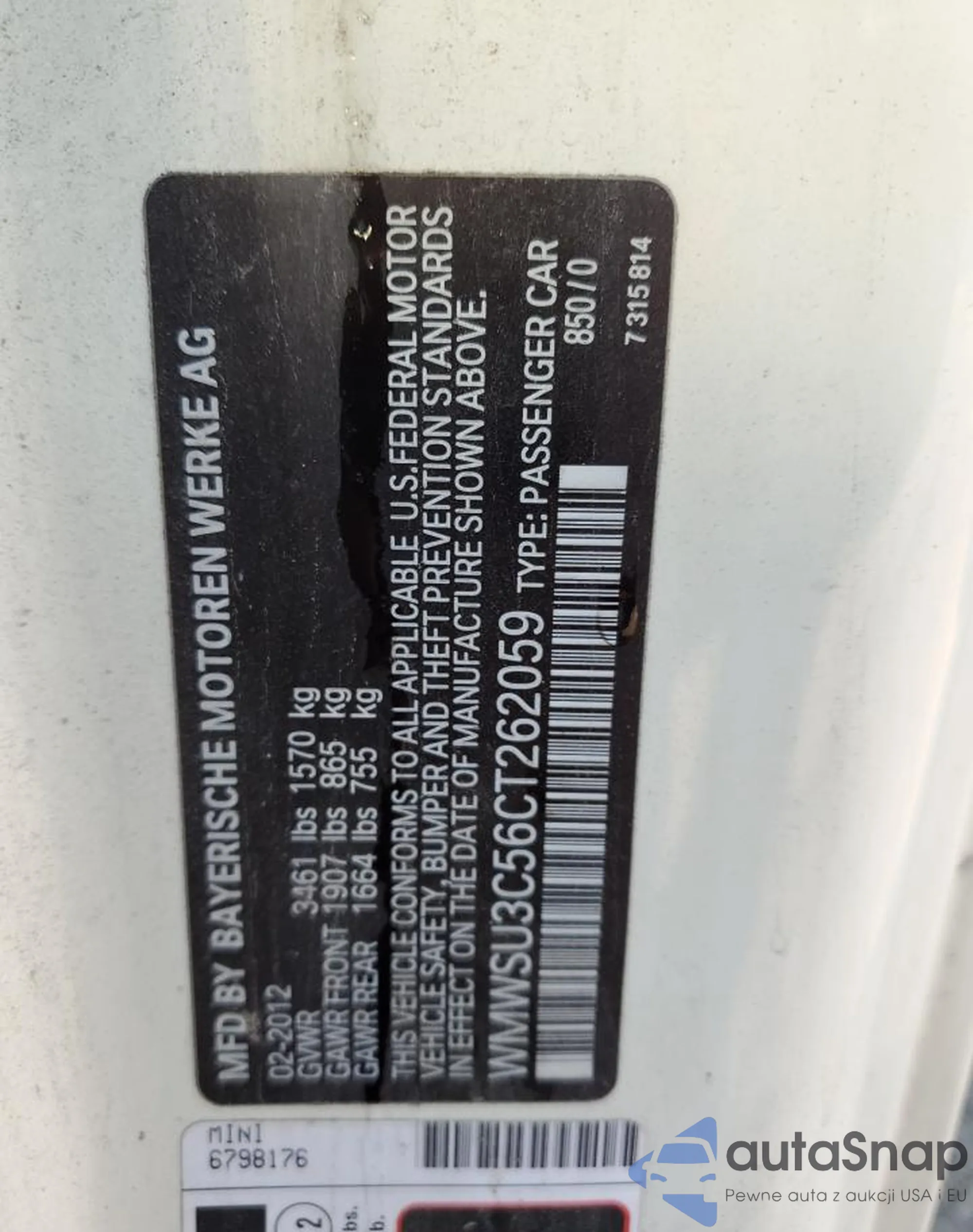 VIN: WMWSU3C56CT262059