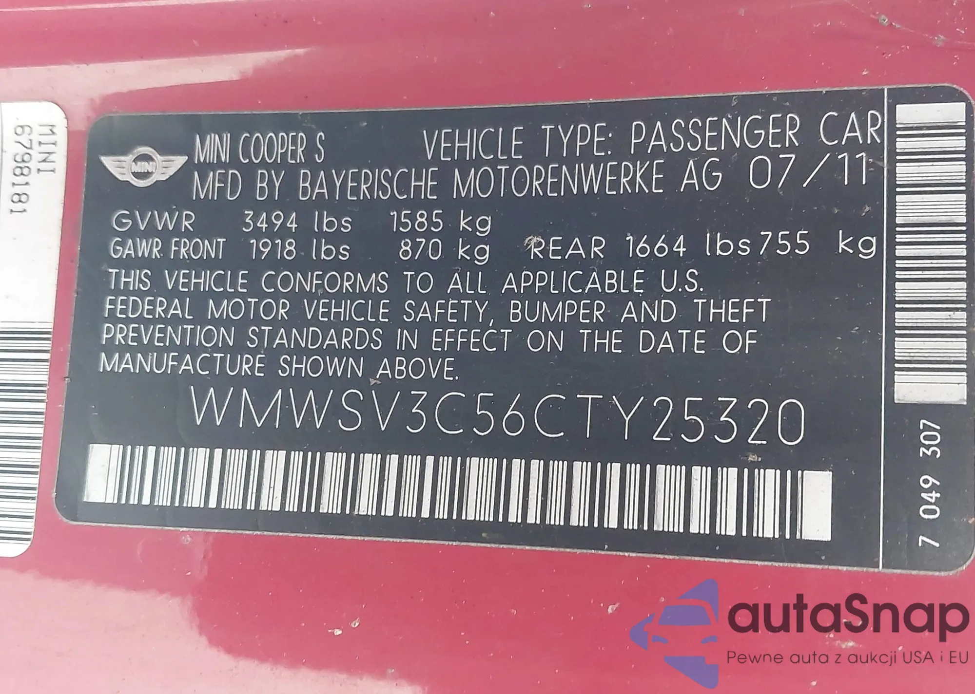 VIN: WMWSV3C56CTY25320