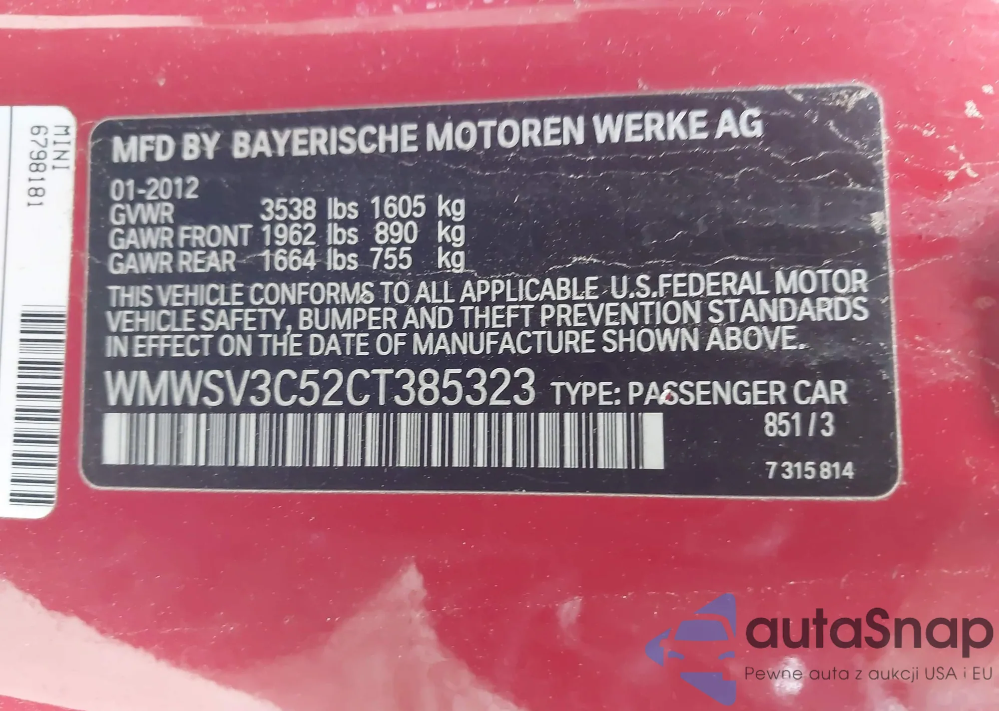 VIN: WMWSV3C52CT385323