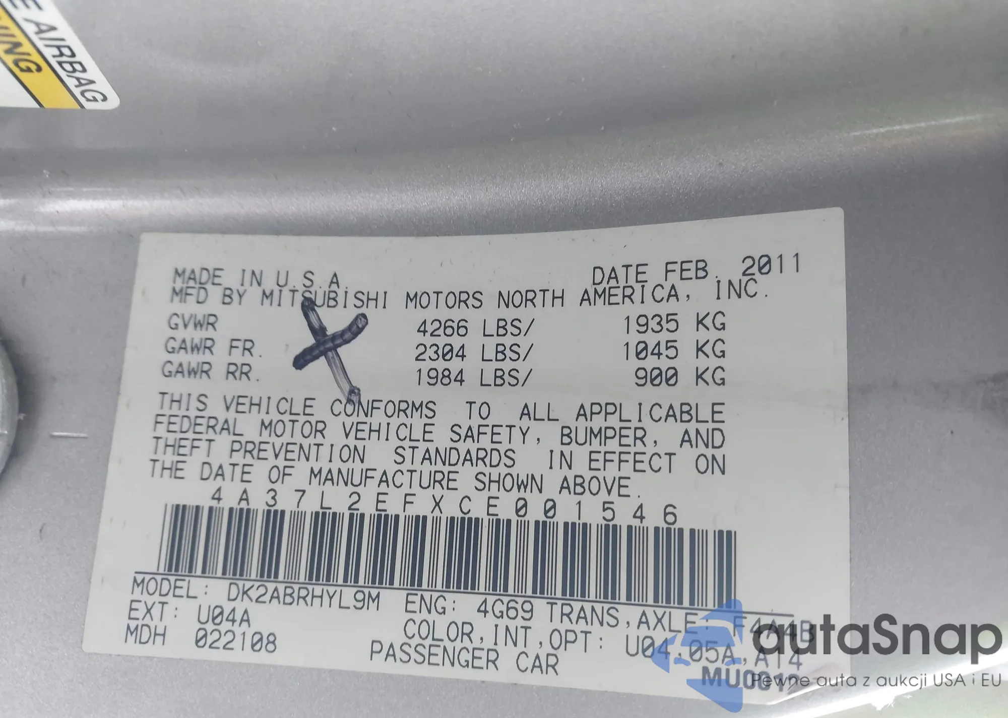 • VIN: 4A37L2EFXCE001546