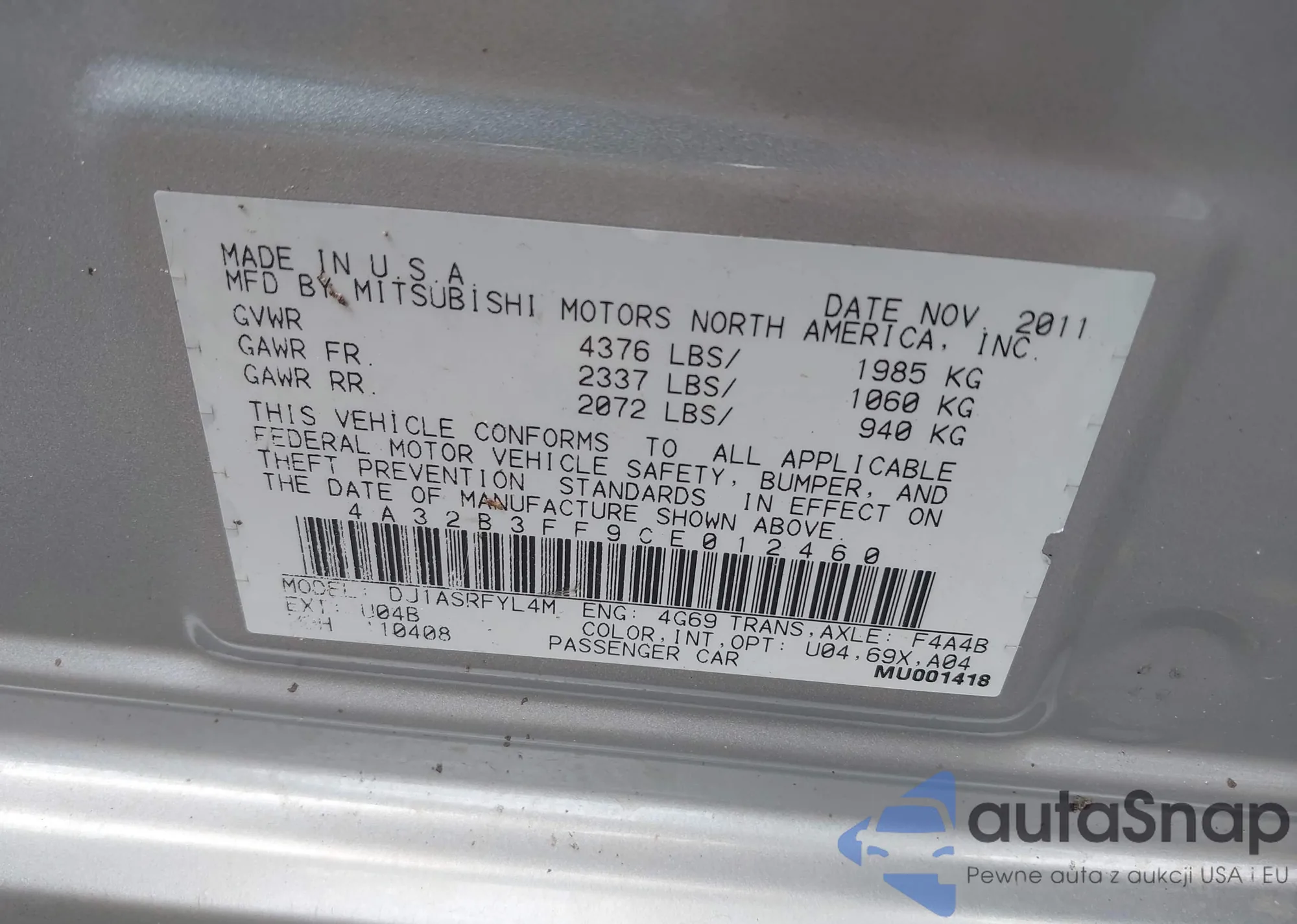 VIN: 4A32B3FF9CE012460