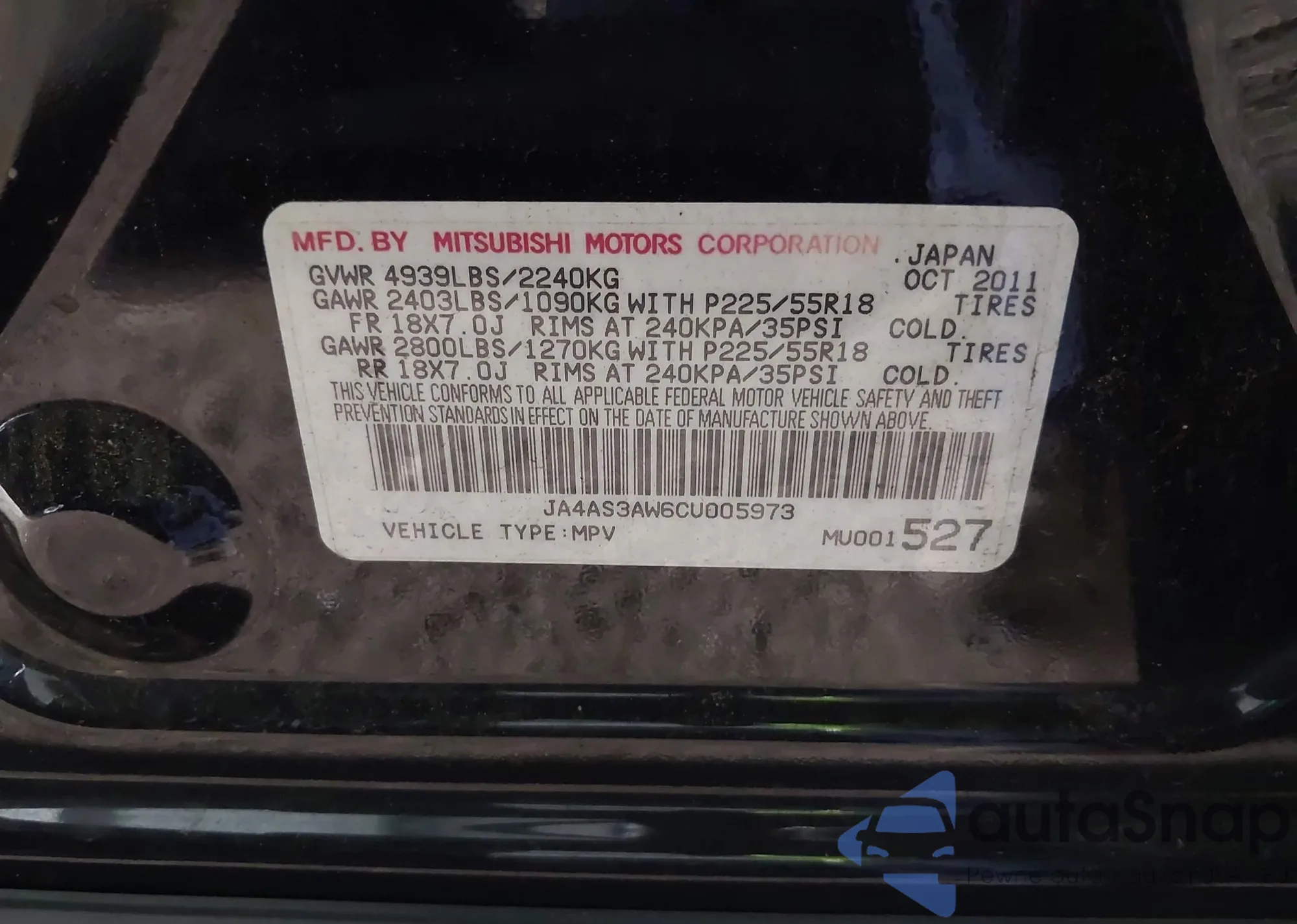 VIN: JA4AS3AW6CU005973