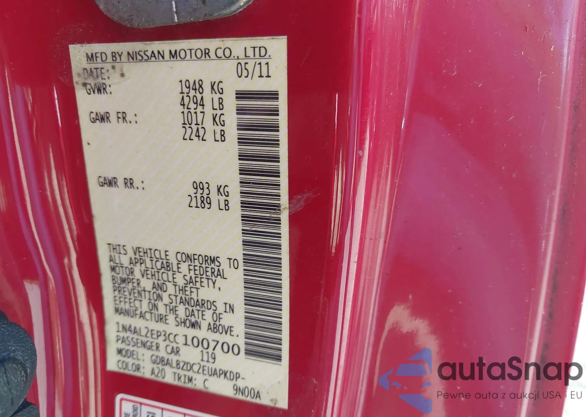 VIN: 1N4AL2EP3CC100700